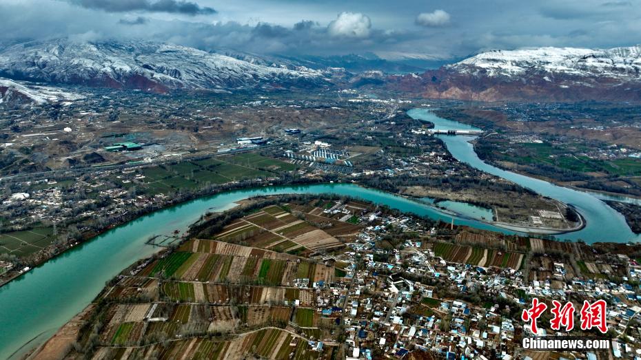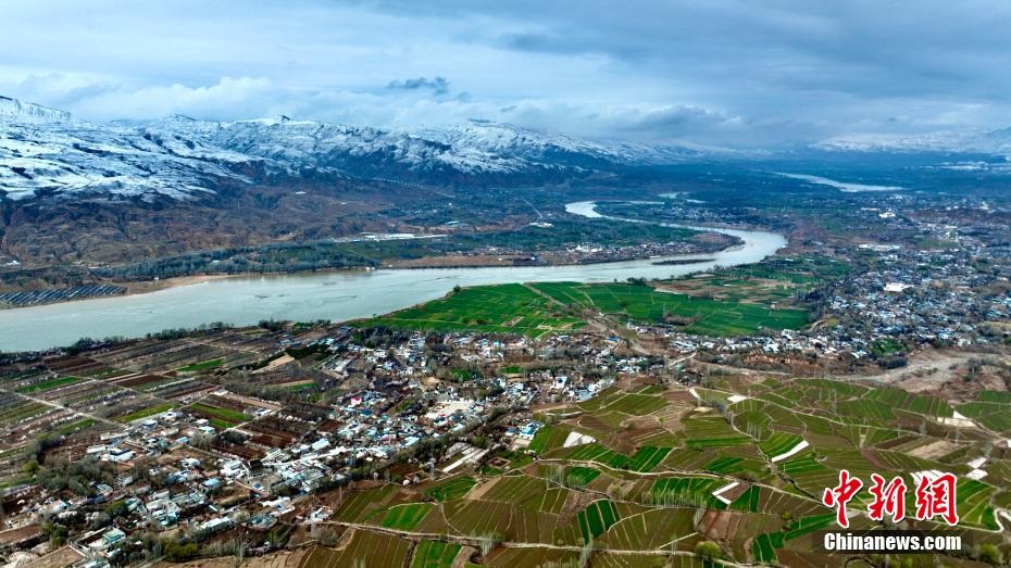 4月3日,結(jié)束“觀鳥季”不久的青海省化隆縣黃河谷地,杏花等果花漸次綻放,與遠(yuǎn)山皚皚白雪、耕地返青麥苗以及翡翠般的黃河,勾勒一幅高原春日?qǐng)D景。黃河流經(jīng)化隆縣168公里,當(dāng)?shù)攸S河水質(zhì)清澈,氣候溫暖。圖為航拍青海省化隆縣境內(nèi)的黃河。