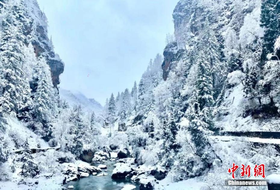 3月底,甘肅甘南藏族自治州卓尼縣大峪溝被一場(chǎng)春雪覆蓋,紛紛揚(yáng)揚(yáng)的雪花勾勒出一幅意境深遠(yuǎn)的水墨丹青畫。大峪溝與九寨溝齊名,有“南有九寨溝、北有大峪溝”之美譽(yù)。圖為春雪增春色,大峪溝玉樹瓊枝的場(chǎng)景。