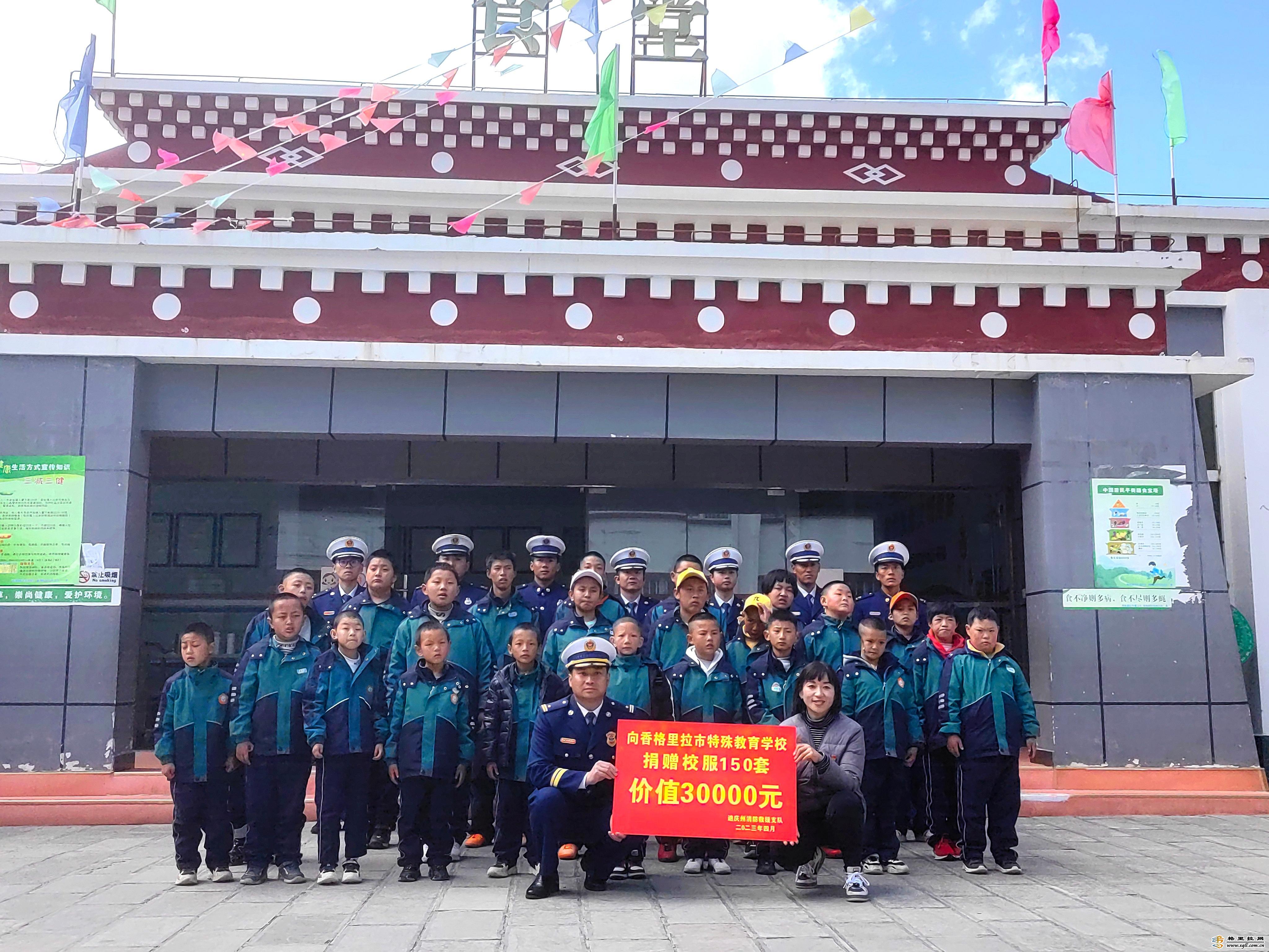 4月7日, 迪慶州消防救援支隊(duì)到香格里拉特殊教育學(xué)校捐贈(zèng)定制校服并參觀學(xué)生課堂。