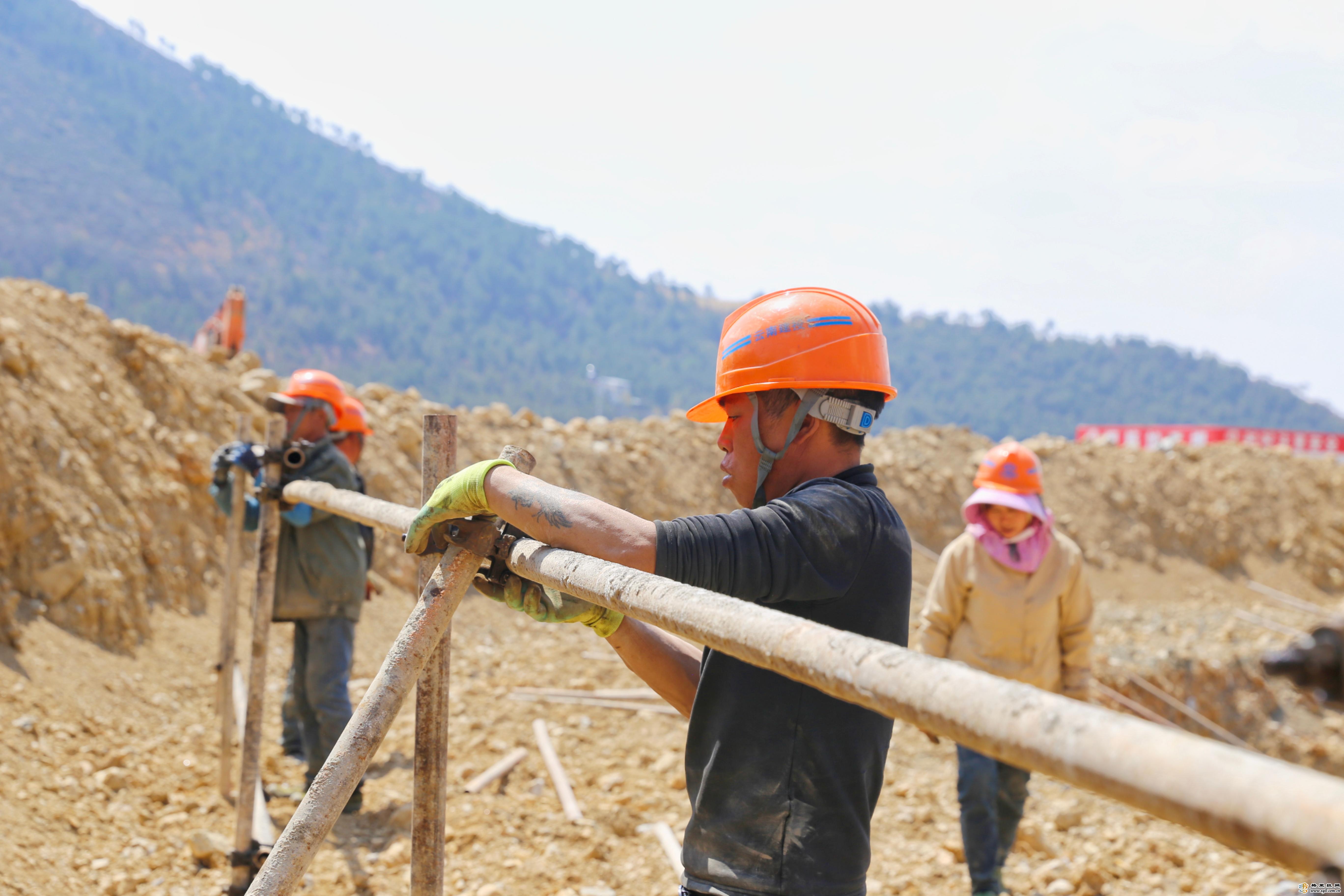 4月11日,香格里拉市藏東旺池卡綜合產(chǎn)業(yè)園北郊片區(qū)建設(shè)項(xiàng)目施工現(xiàn)場(chǎng),工人正在加緊施工。