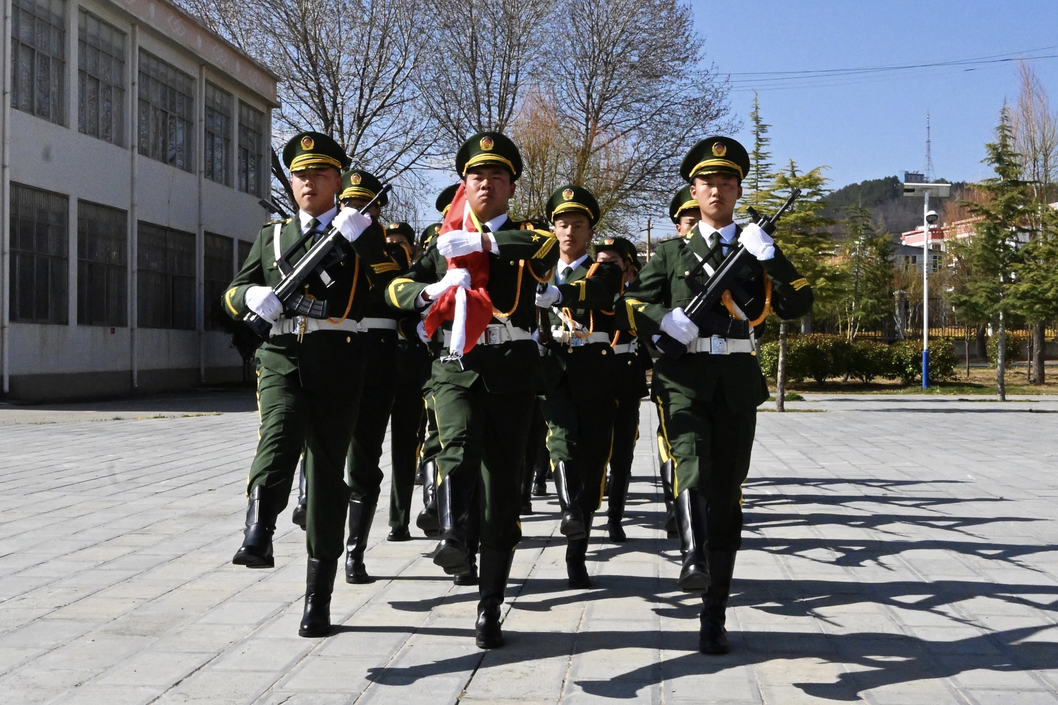 據悉,該校組建一支紀律嚴明、嚴肅認真的國旗護衛(wèi)隊是學校推進國防教育和軍魂教育的重要載體,也是弘揚愛國主義精神、加強愛國主義教育的重要形式。