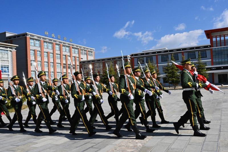 迪慶州民族中學第一屆國旗護衛(wèi)隊完成升旗首秀