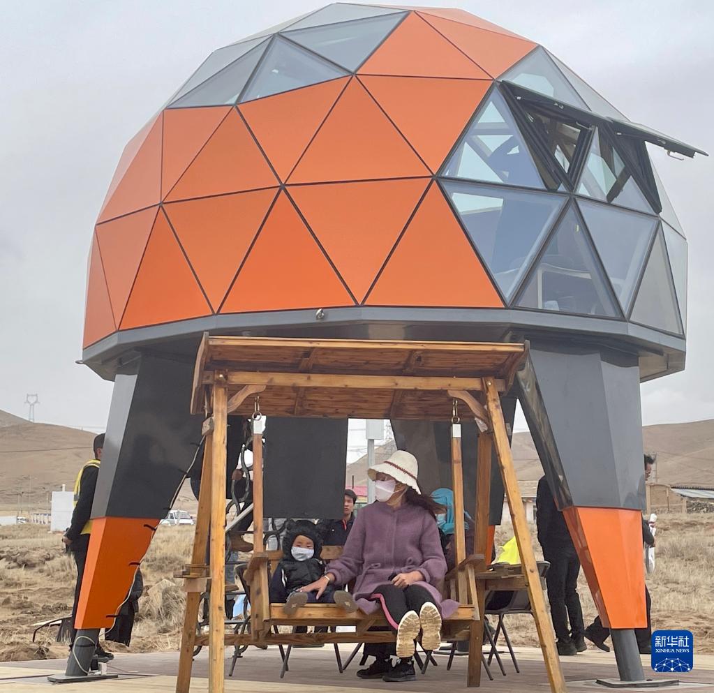 27日,游客在活動現(xiàn)場體驗星空房和戶外秋千。 新華社記者 周盛盛 攝
