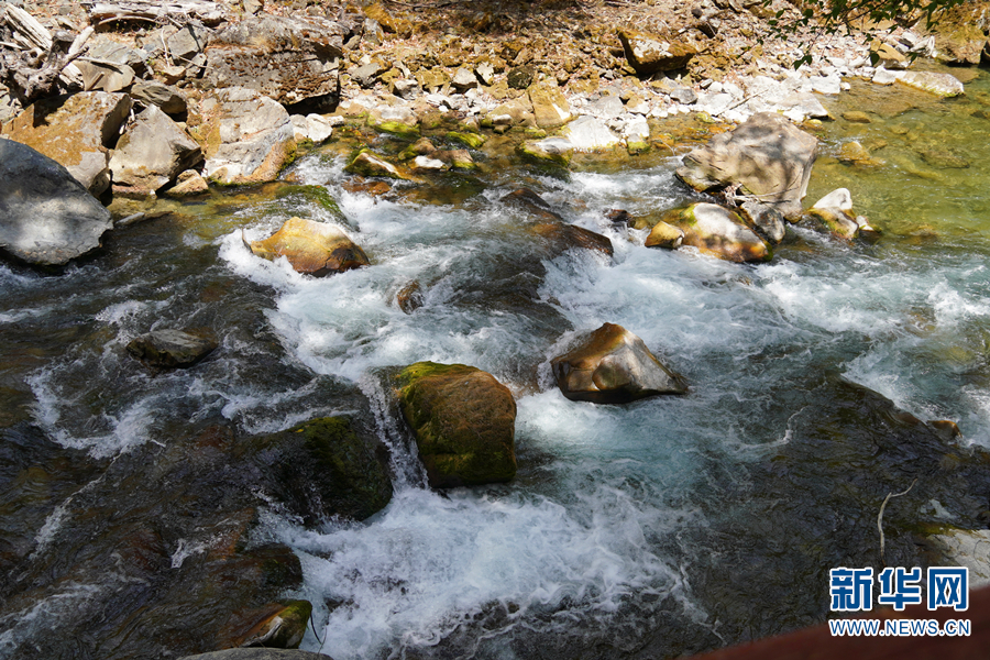 通往七彩瀑布的棧道旁清泉汩汩(4月26日攝)。新華網(wǎng) 柴靜 攝