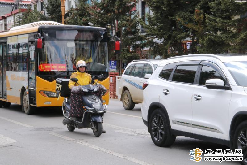 五一”假期期間,外賣小哥們每天穿行在大街小巷,不辭辛苦,只為給市民生活帶去便利。(洛桑央宗 攝影報道)