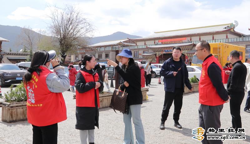 “五一”假期期間,香格里拉市文旅青年志愿服務(wù)者在該市各個景區(qū)景點雷鋒志愿服務(wù)站為游客提供游覽咨詢、宣傳引導(dǎo)、便民應(yīng)急等服務(wù)。(魯茸追瑪 和麗瑤 攝影報道)