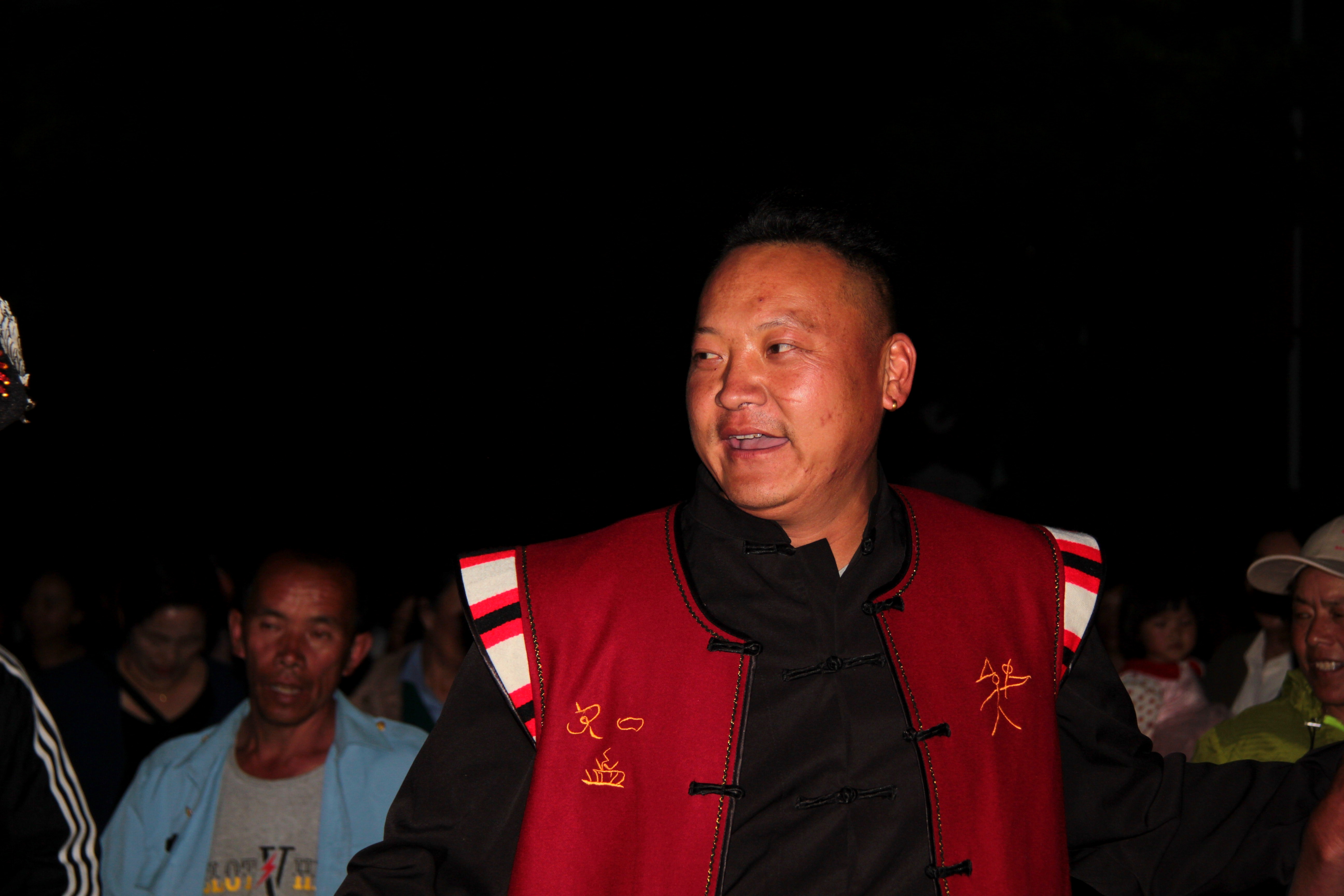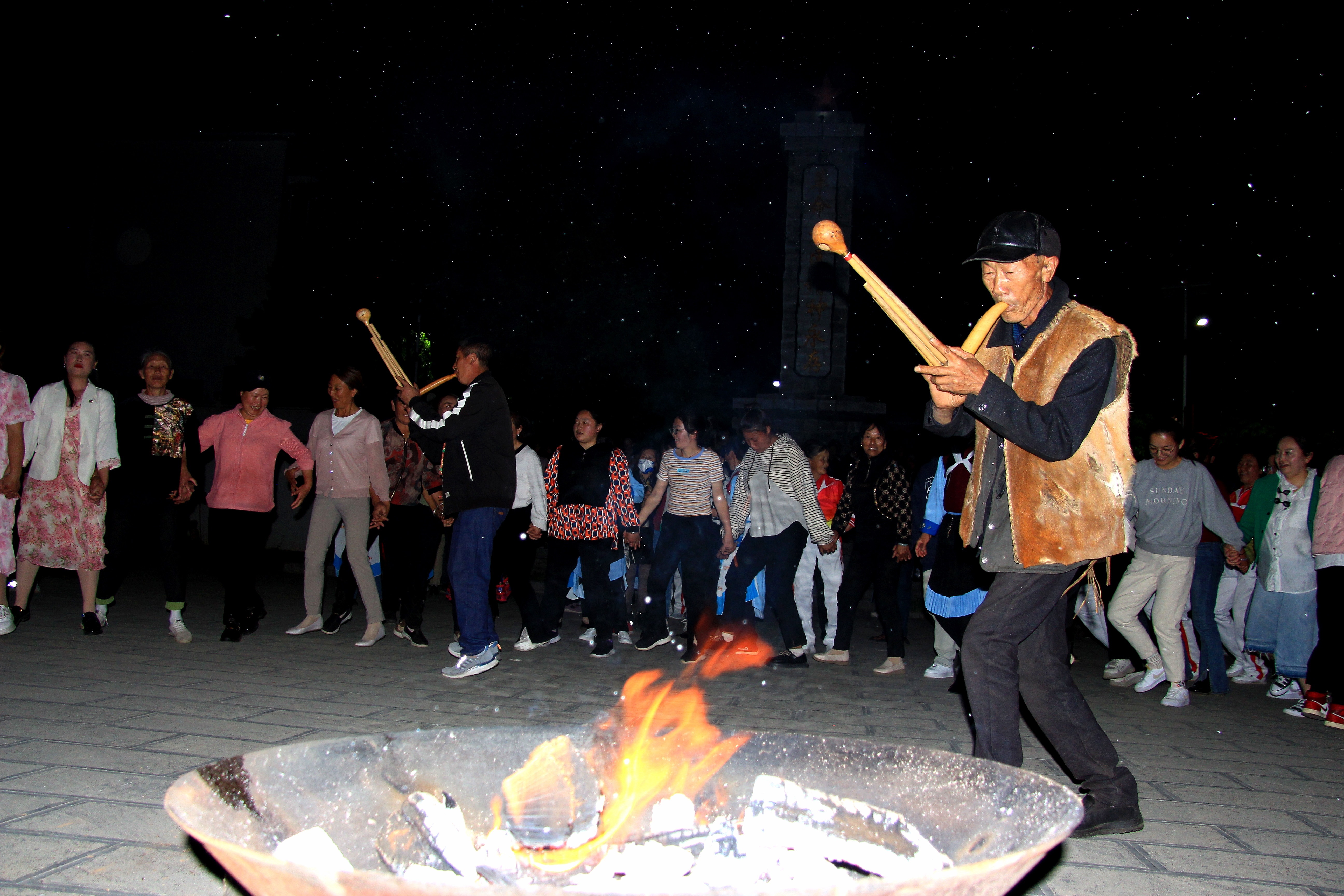 打跳開始了,不斷有圍觀群眾參與到打跳當(dāng)中,打跳選手手牽手把篝火圍了三四圈,篝火的映照下,大家臉上的笑容又燦爛了幾分。打跳歌曲從勁爆葫蘆絲換到納西三部曲又換到大蠻調(diào),換了無數(shù)首,而參與群眾仿佛不知疲倦一直激情打跳著,現(xiàn)場非?;馃帷?/p>