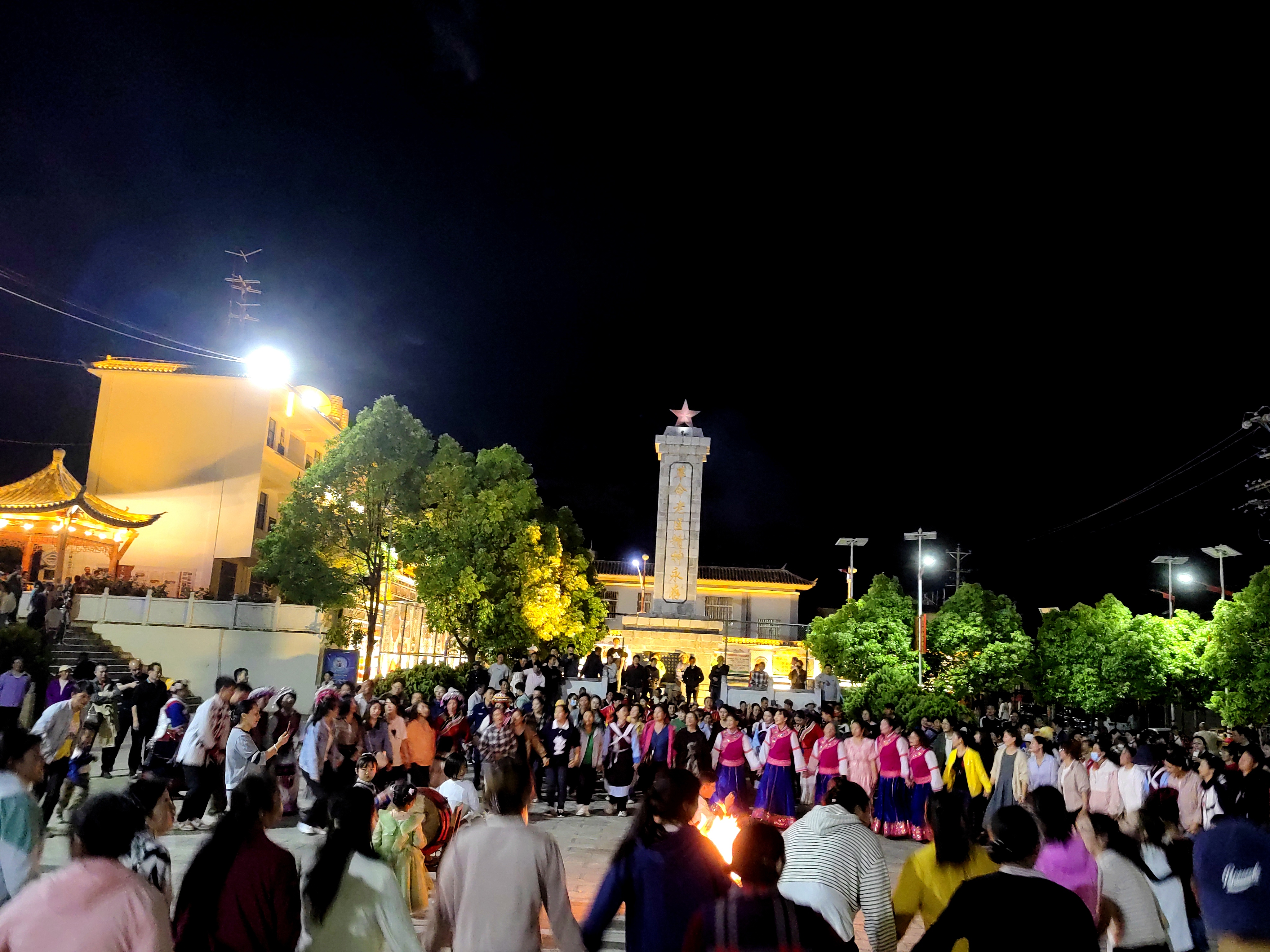不多時,在金江鎮(zhèn)小學(xué)學(xué)生吹奏的葫蘆絲聲中,篝火晚會的序幕徐徐拉開。