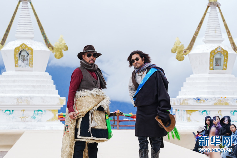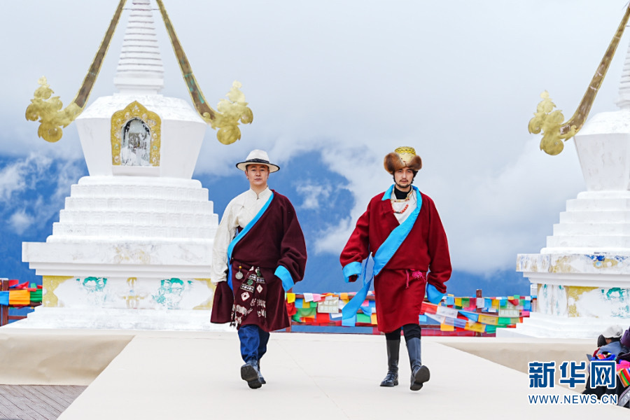 雪山下的民族時(shí)裝秀(5月2日攝)。新華網(wǎng) 此里取次 攝