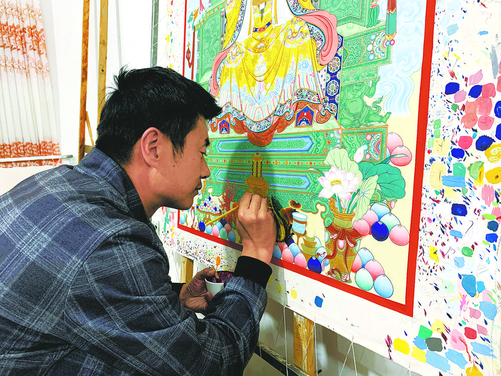 近年來,熱貢唐卡傳承保護(hù)工作不斷發(fā)展完善,已形成村落、家庭、傳習(xí)中心、高校多渠道傳承的格局。藝術(shù)的生命不僅僅在于傳承,更要在傳承中發(fā)展。如今,熱貢唐卡已走出雪域高原,古老的唐卡藝術(shù)正在煥發(fā)新的蓬勃生機(jī)。