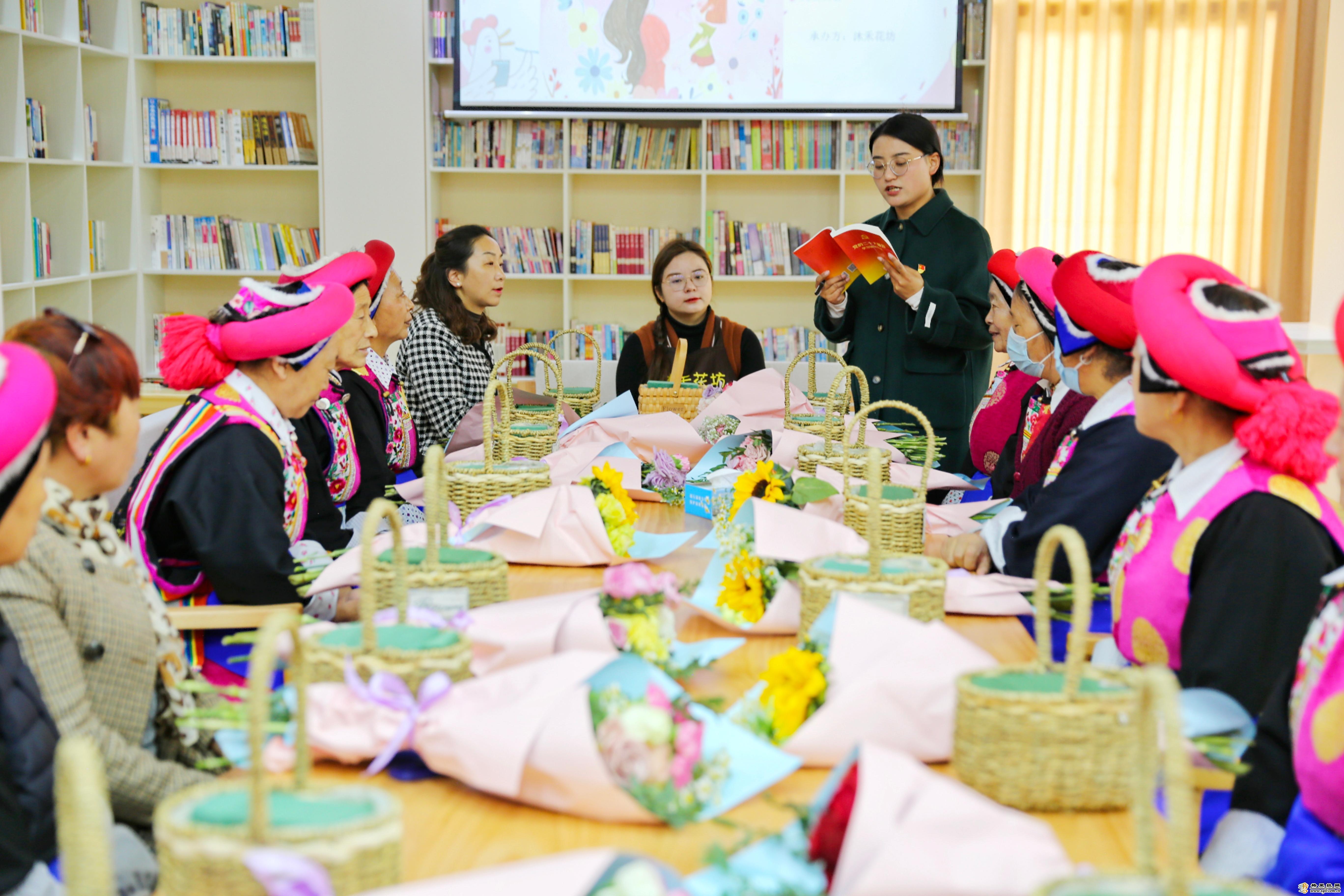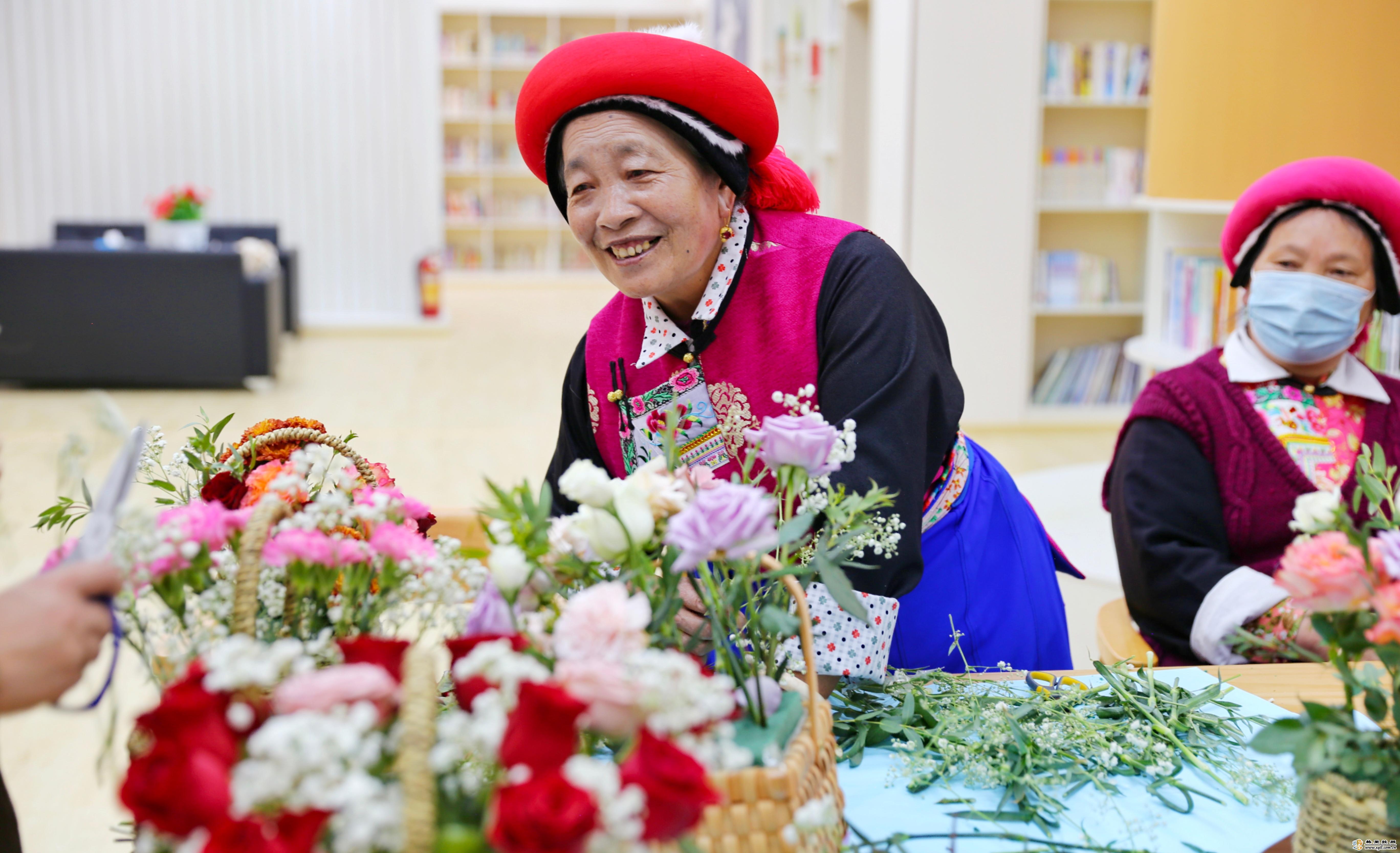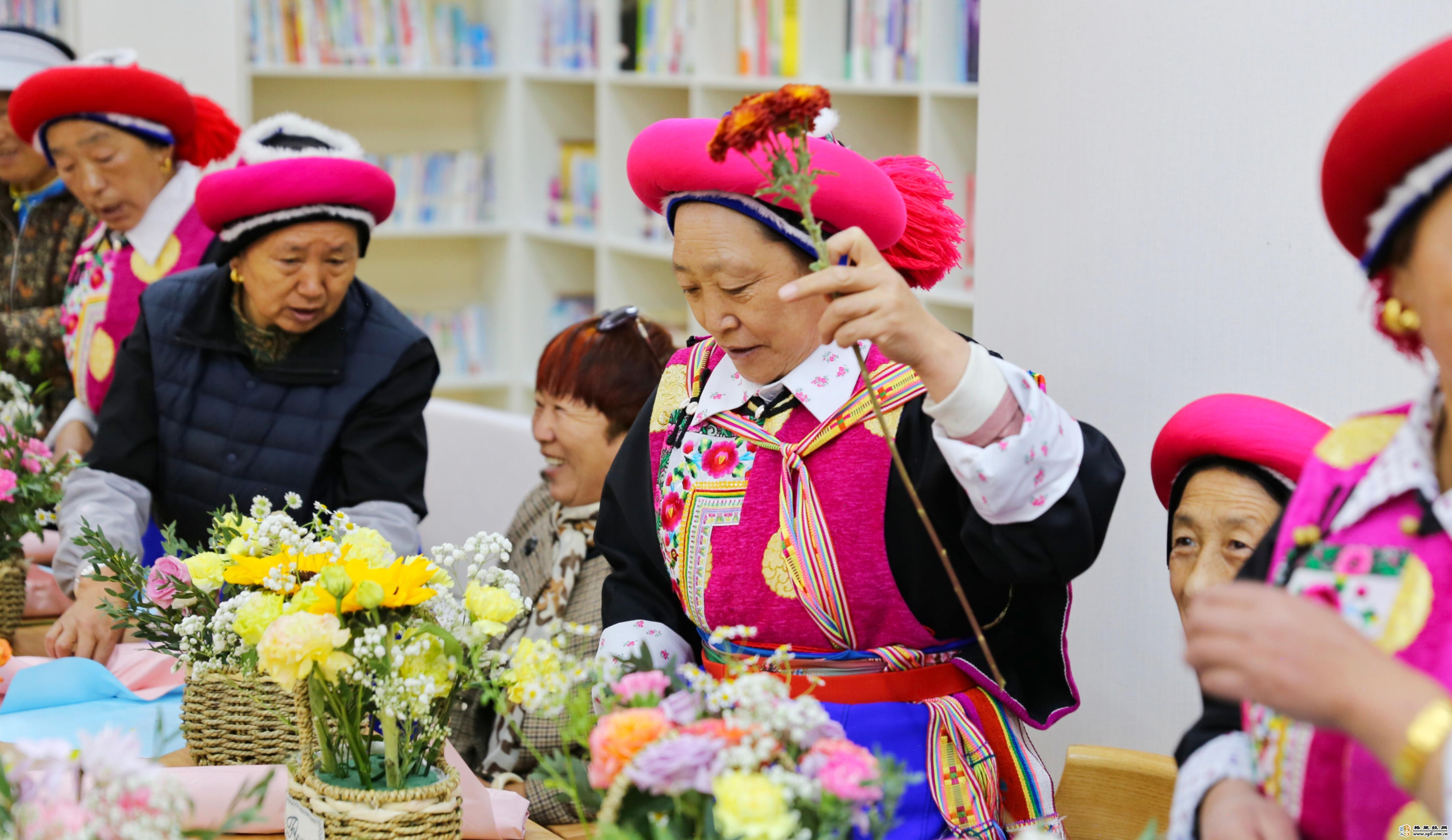 隨后,還組織媽媽們學(xué)習(xí)了插花手藝,活動(dòng)室內(nèi)充滿了鮮花的芬芳和大家的歡聲笑語。
