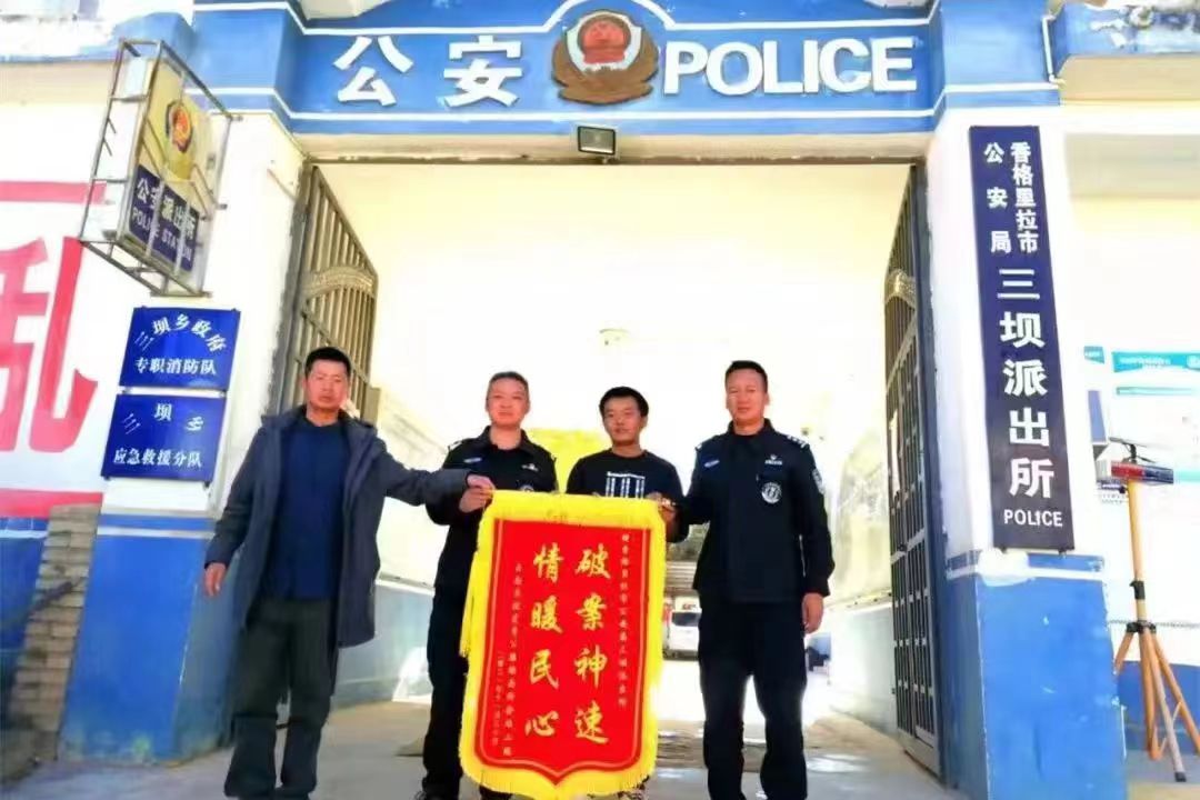 2022年4月18日,三壩派出所接到虎香公路六分部工作人員報警稱拌合站內(nèi)的灌車于17日被砸,攝像頭被盜,請求出警,到達現(xiàn)場后張宏帶領(lǐng)民輔警進行現(xiàn)場勘查并對附近村民進行走訪,經(jīng)過大量工作成功鎖定犯罪嫌疑人身份,將被盜的攝像頭找回,4月22日虎香公路六分部2名工作人員帶著一面印有“破案神速解民憂,感謝人民好警察”的錦旗來到三壩派出所找到張宏,對他們迅速找回被盜物品及破獲車輛被砸案表示感謝。