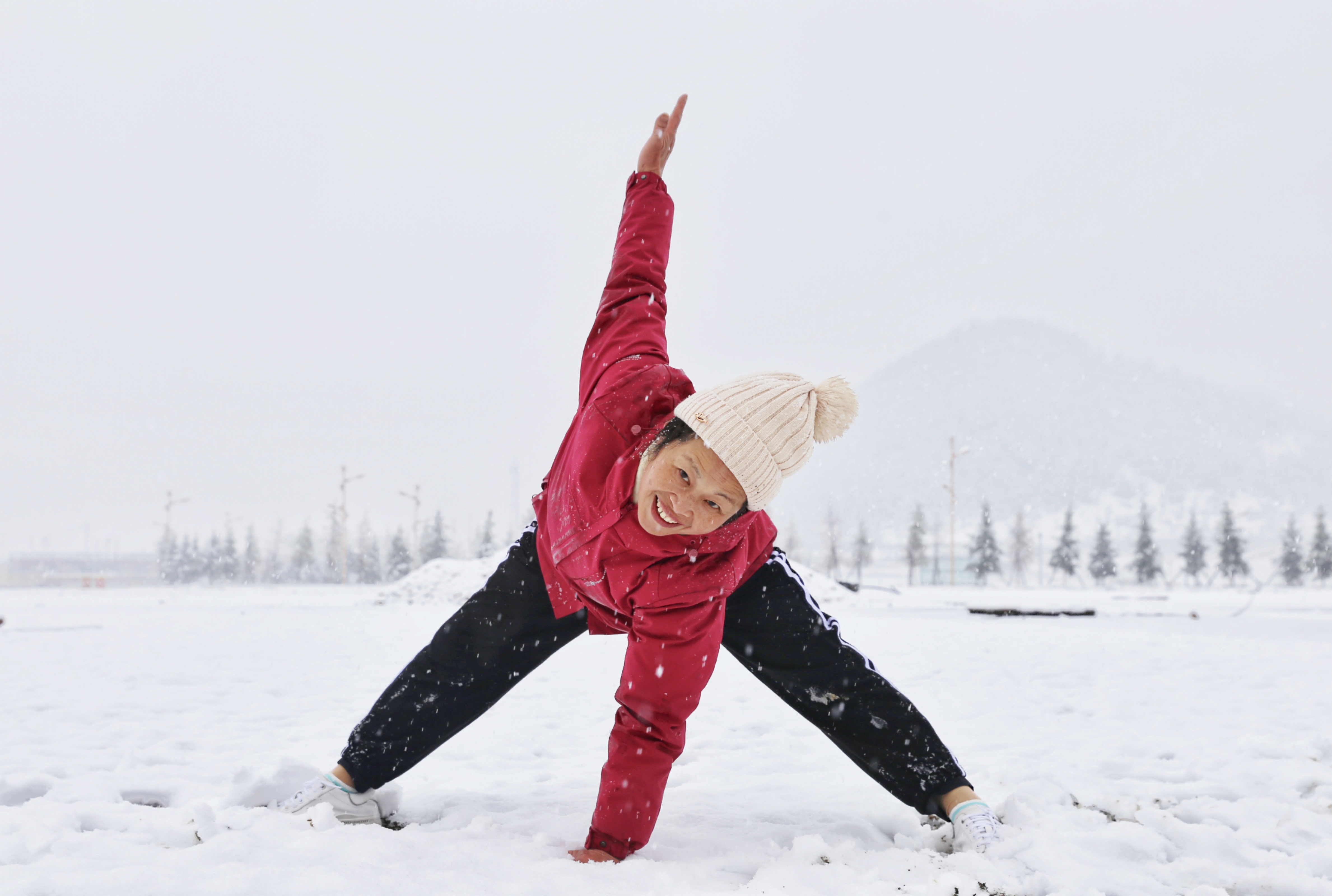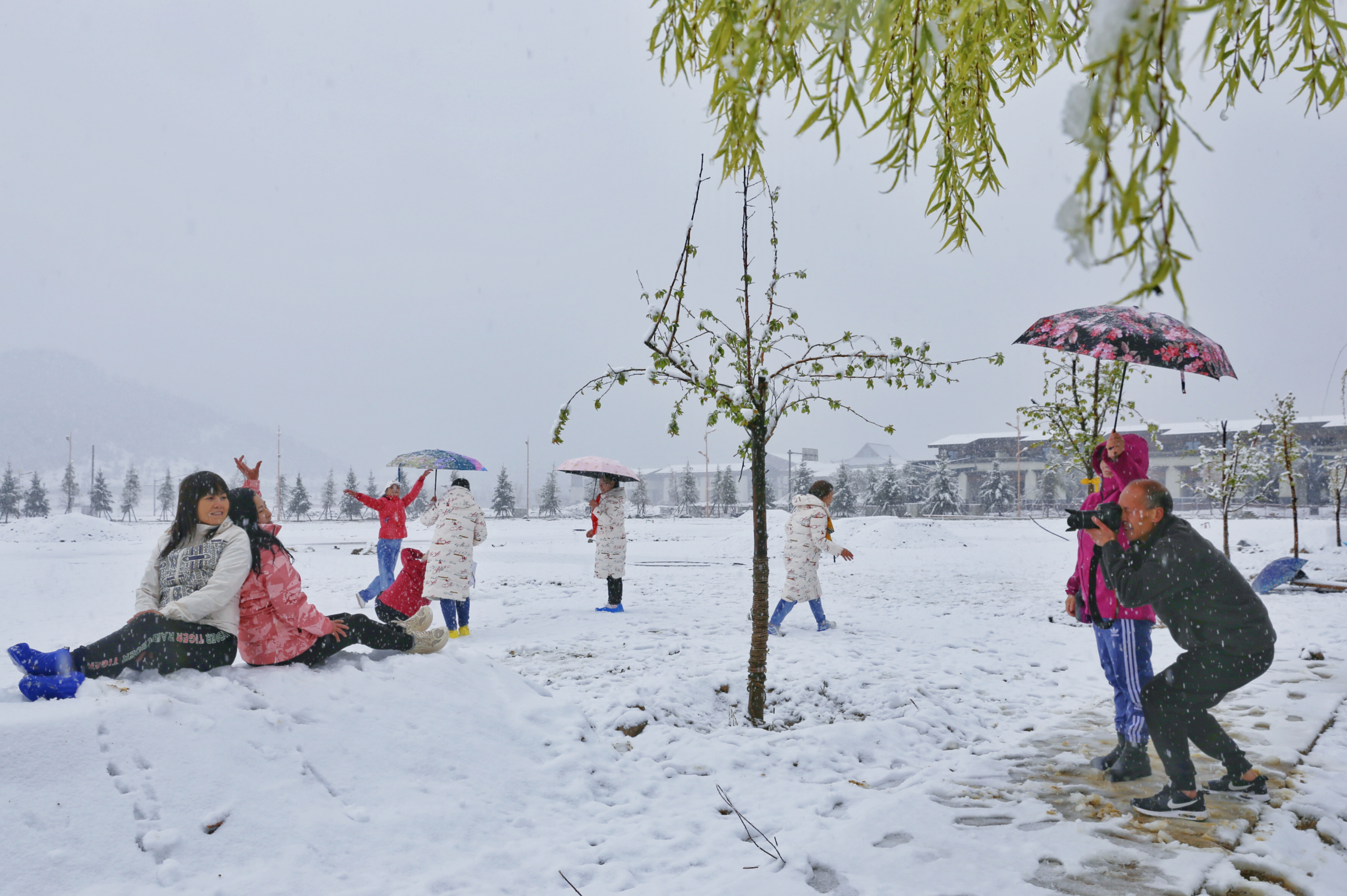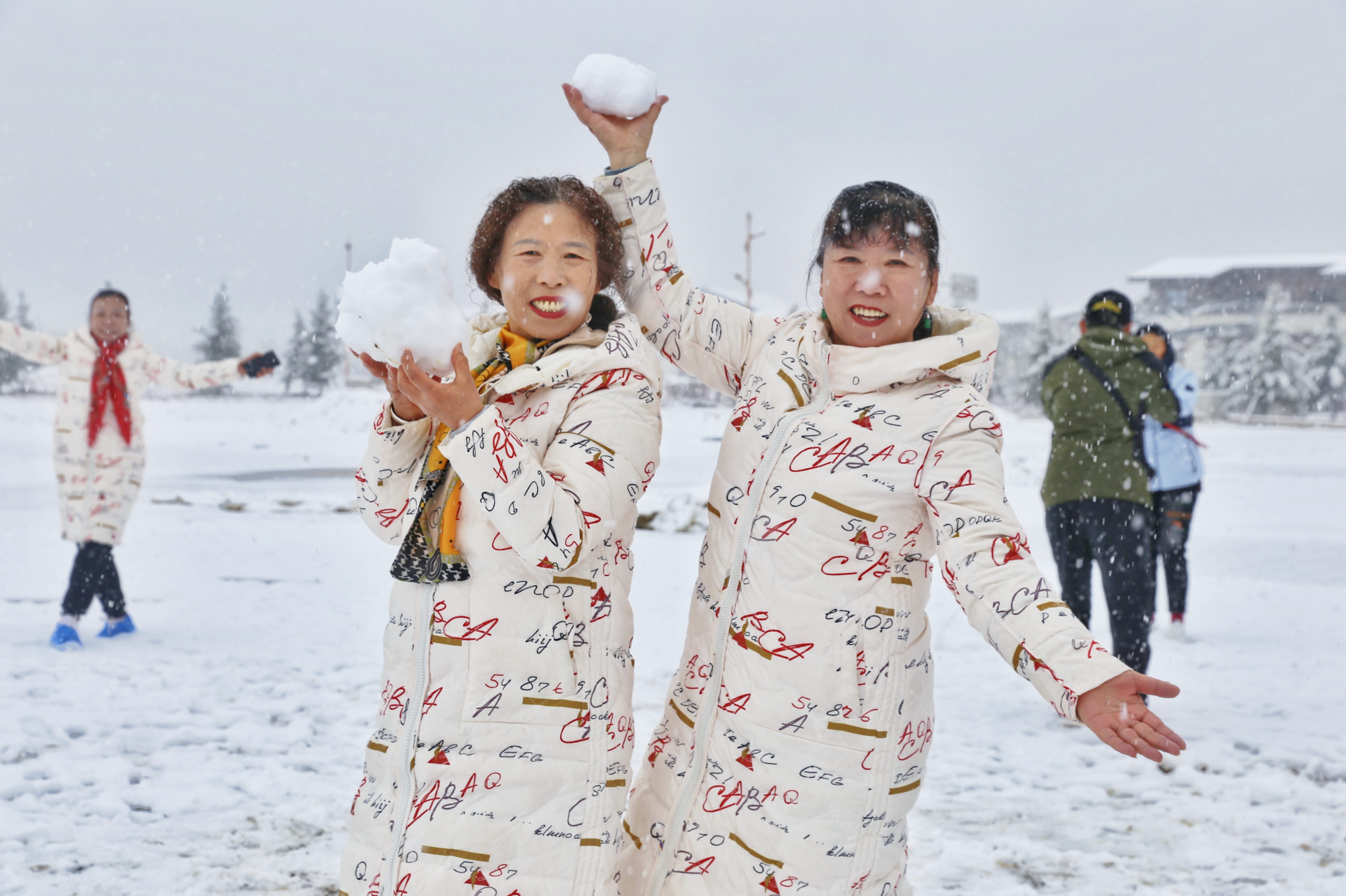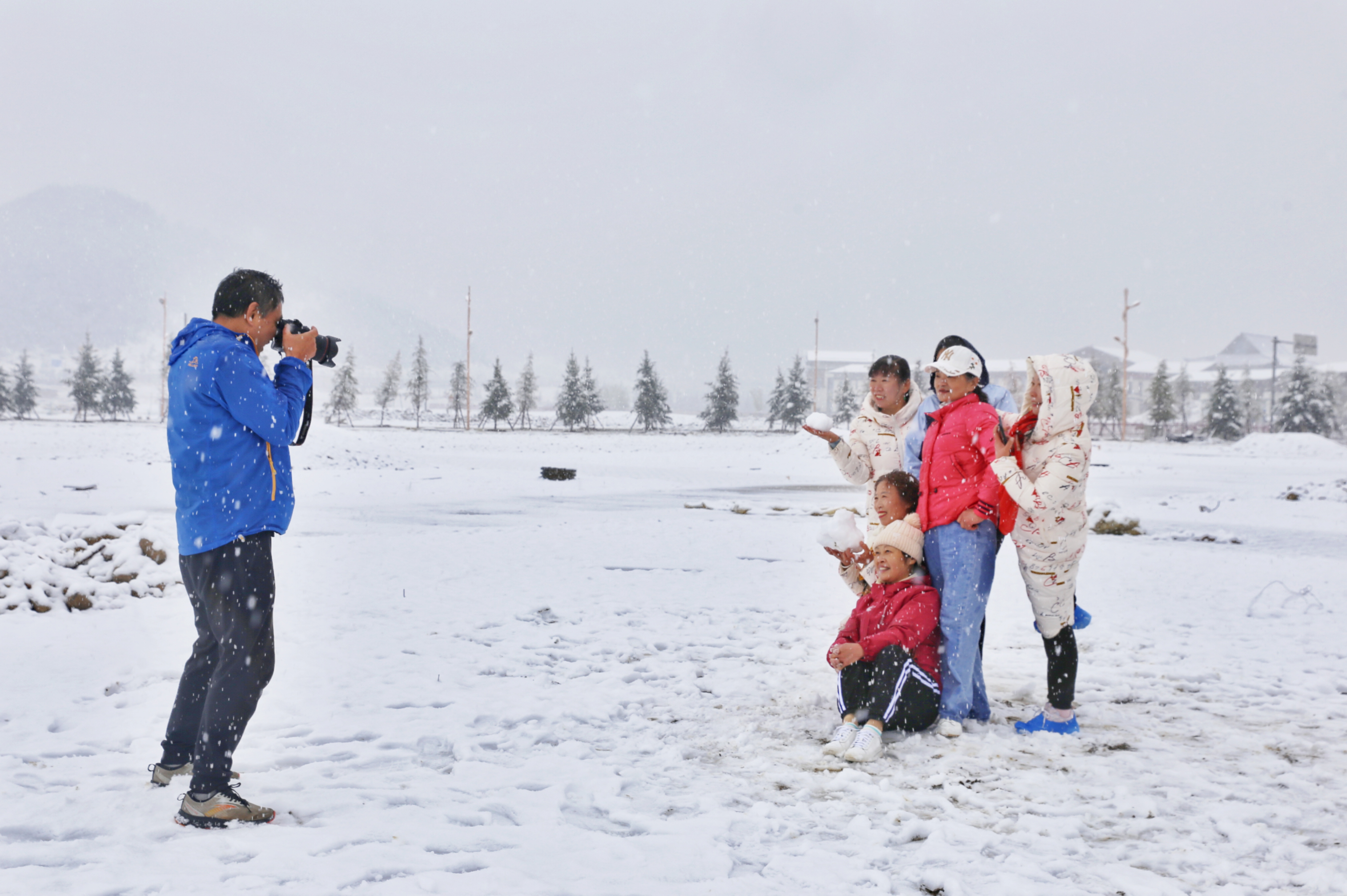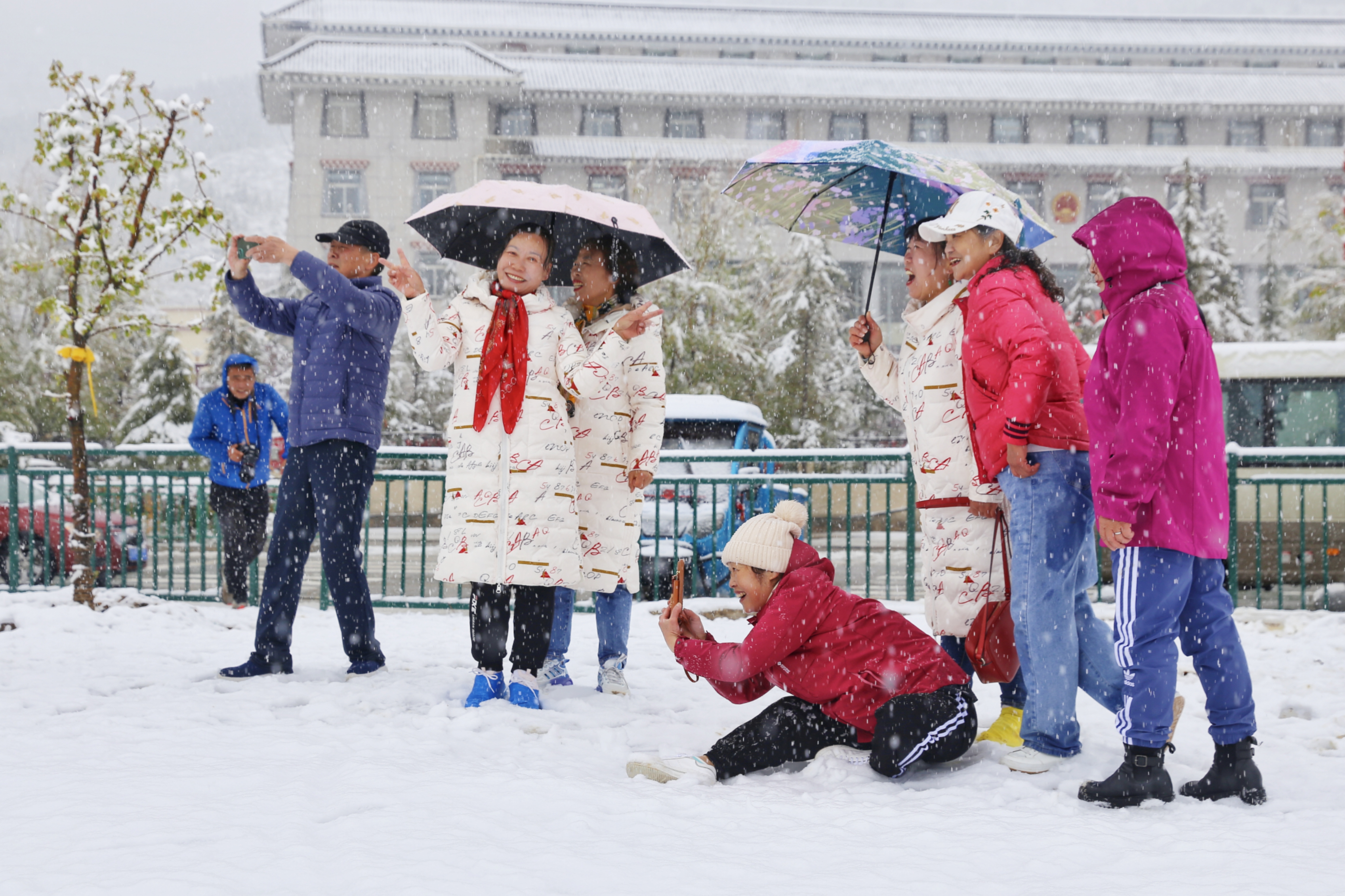 5月15日,香格里拉迎來一場夏雪,大雪紛飛的雪地中一群來自貴州的“嬢嬢團”正興奮的玩雪、拍照,“太有意思了,五月也能玩到雪,很難得?!苯衲?5歲的劉嬢嬢告訴記者,她們在香格里拉游玩三四天了,今天準(zhǔn)備返程,出城路上被雪景吸引便索性再留出半天時間看雪。雪地中的嬢嬢們精氣十足,捏雪球、劈腿、下腰、打滾……大家紛紛擺出自己最拿手的pose拍照記錄下這令人驚喜的美景。