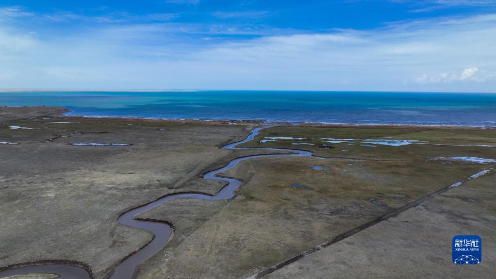 這是5月17日在青海省海南藏族自治州共和縣石乃亥鄉(xiāng)拍攝的青海湖一角(無人機照片)。新華社記者 解統(tǒng)強 攝