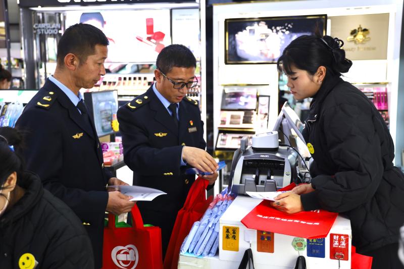 啟動(dòng)儀式結(jié)束后,市場監(jiān)督管理部門的工作人員為現(xiàn)場群眾發(fā)放并講解宣傳冊(cè),同時(shí)為化妝品經(jīng)營商進(jìn)行上門普法,規(guī)范企業(yè)經(jīng)營行為。