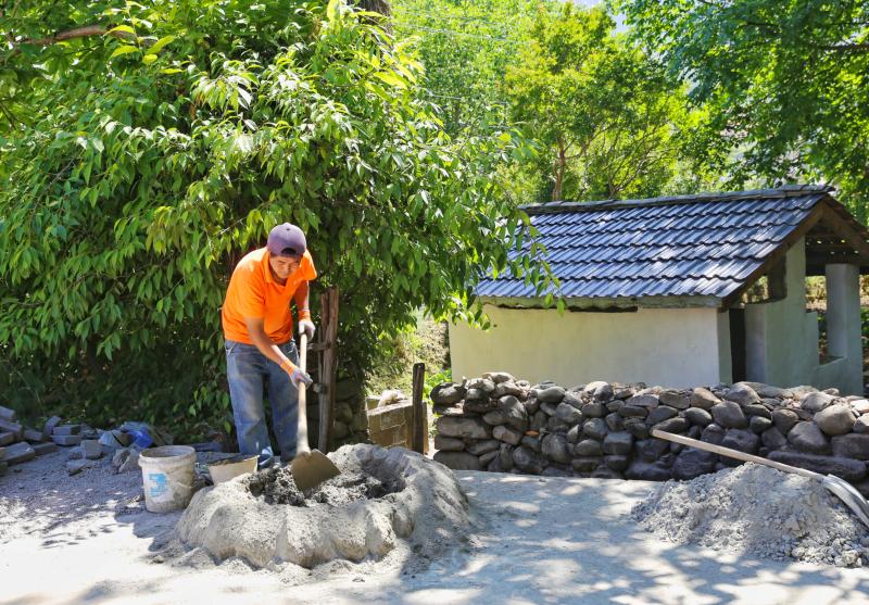 工人正在金江鎮(zhèn)吾竹村進(jìn)行農(nóng)村三格式戶廁建設(shè)