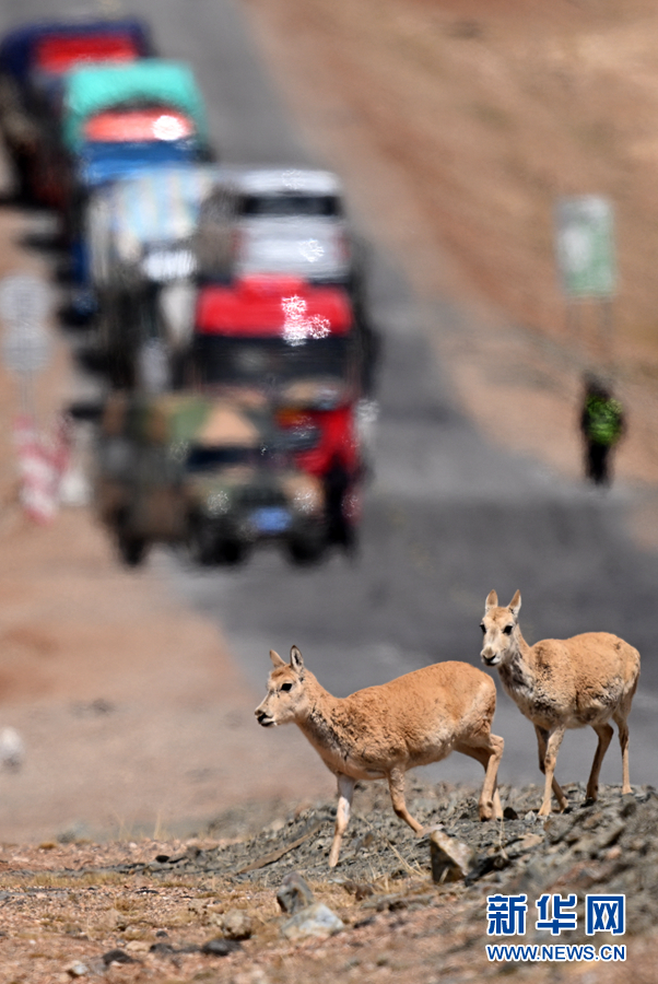 一組高清大圖,新華社記者帶你一睹藏羚羊“過(guò)馬路”。