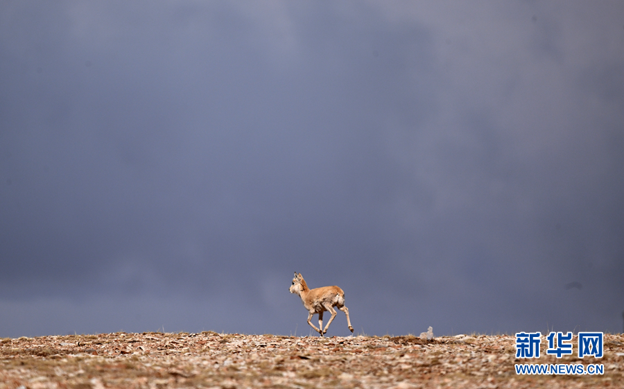 一只藏羚羊在青海省玉樹(shù)藏族自治州境內(nèi)的草原上活動(dòng)。新華社記者 張宏祥 攝