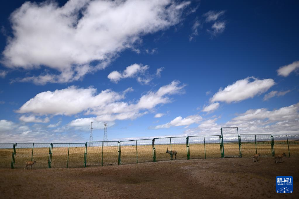在可可西里國家級自然保護區(qū)索南達杰保護站,藏羚羊在野生動物救助中心活動(5月30日攝)?!⌒氯A社記者 薛玉斌 攝