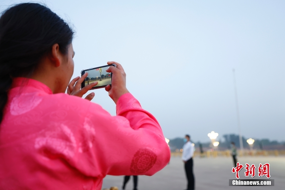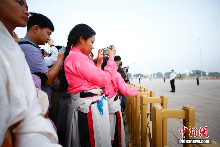 圖為青少年在天安門廣場看升旗。中新社記者 富田 攝