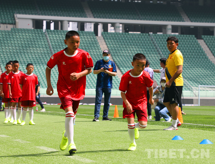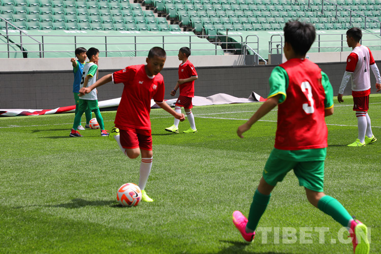 同樣在這片場(chǎng)館,6月1日,他們和北京國安的30名小球員進(jìn)行過一場(chǎng)交流賽。來自雪域風(fēng)一般的少年們完全忽略了北京炎熱的天氣,在場(chǎng)上放飛奔跑,追逐拼搶。
