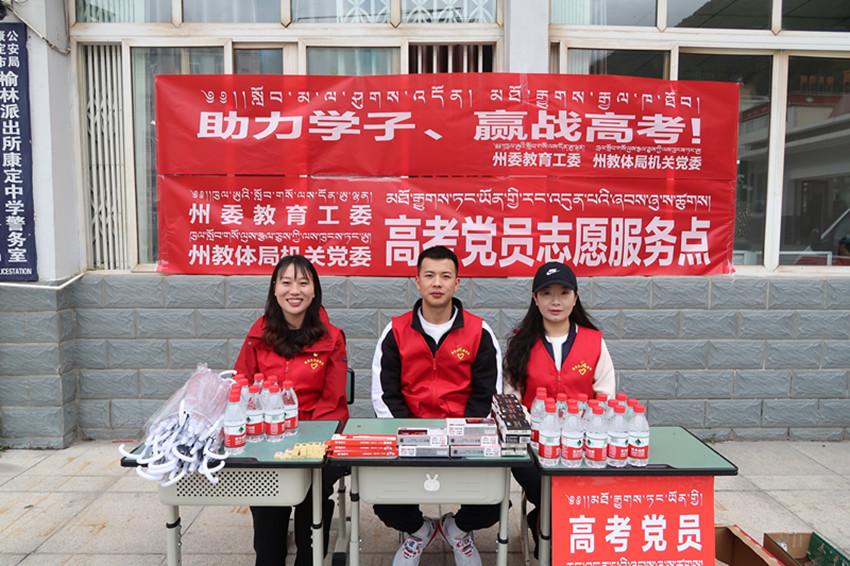 值得一提的是,除了公安交警部門的全程護(hù)航外,各職能部門對(duì)高考考生也傾注了許多關(guān)愛。記者在康定中學(xué)考點(diǎn)看到,州委教育工委、州教體局等部門還設(shè)立了高考黨員志愿服務(wù)點(diǎn),免費(fèi)為考生提供文具、雨具、礦泉水等。
