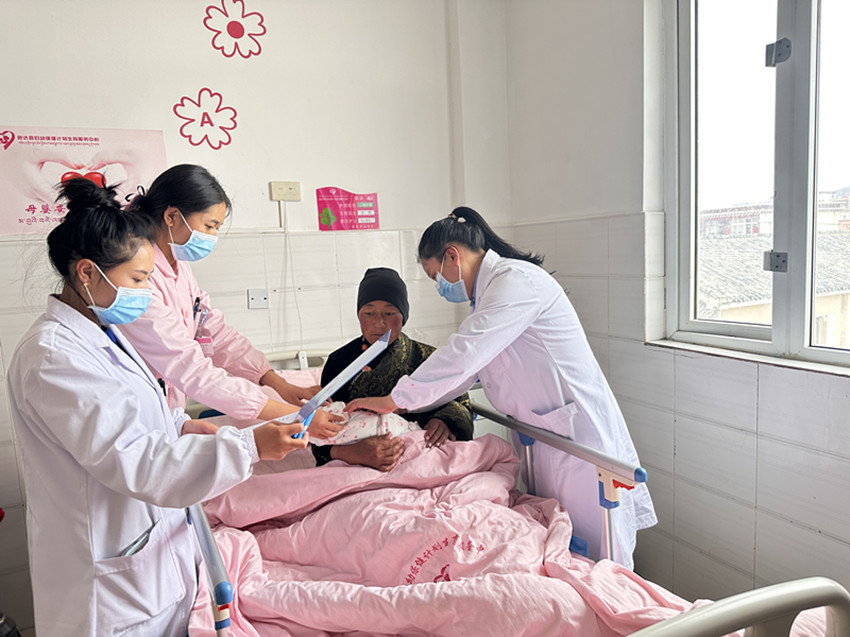 “母乳喂養(yǎng)要保持正確姿勢,防止嬰兒嗆奶。”孕產保健醫(yī)生格絨拉姆在巡房時,給產婦們普及正確的育兒知識并告知產后康復的重要性。