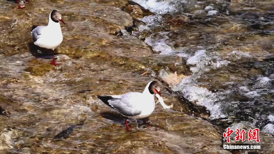 圖為鳥類在洄游途中捕食湟魚。