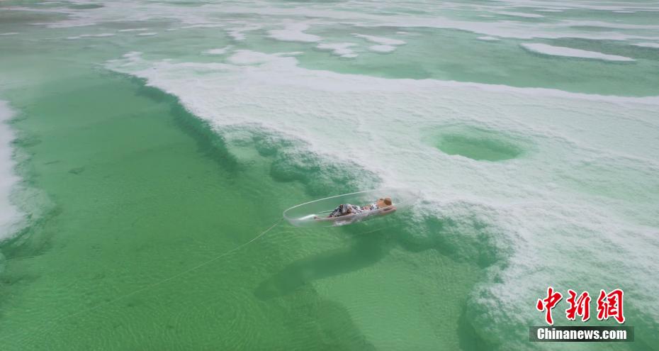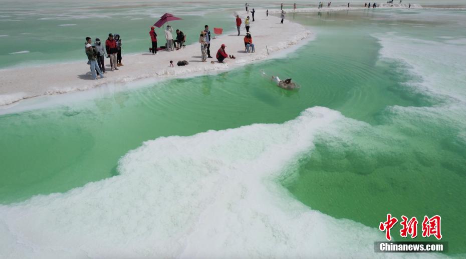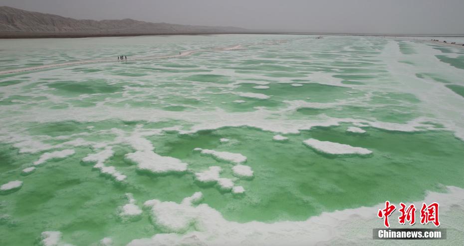 夏日,位于青海海西州茫崖市花土溝鎮(zhèn)的翡翠湖宛如色彩絢麗的油畫(huà)被描繪在蒼茫的柴達(dá)木盆地上,淡青、翠綠、深綠色的湖水如碎玉散落在大漠戈壁上,充滿生機(jī)。茫崖翡翠湖南依昆侖山,北靠阿爾金山,總面積約26平方公里,屬于硫酸鎂亞型鹽湖,由于所含礦物質(zhì)濃度的不同,致使湖面顏色深淺不一。18日,由中新社青海分社,青海省海西州茫崖市委、茫崖市人民政府共同主辦的“赴蒼茫之崖品人間煙火”青?!っQ?023美食大會(huì)在茫崖市正式啟動(dòng)。近日,活動(dòng)團(tuán)隊(duì)來(lái)到茫崖翡翠湖進(jìn)行拍攝采風(fēng)。