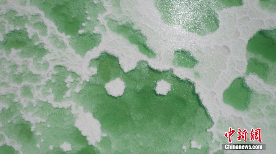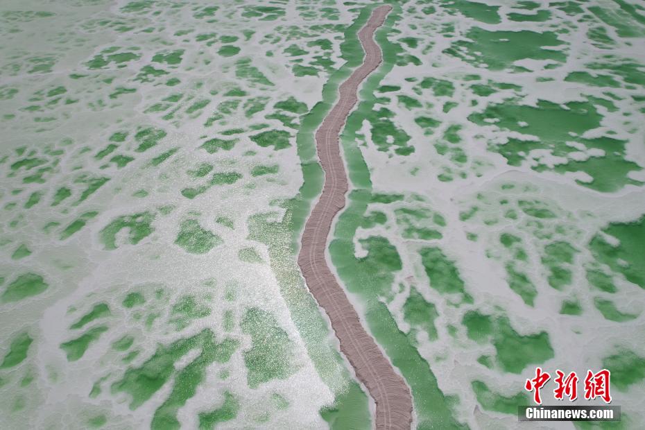8月15日,航拍地處青海省海西州茫崖市的翡翠湖。翡翠湖是一個(gè)人工鹽湖,田字狀的湖水呈現(xiàn)出青翠的色彩。[詳細(xì)]