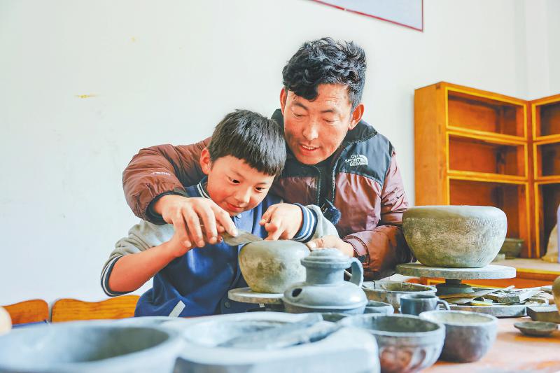 “我土生土長在這里,從父輩那里繼承手藝,不懂營銷,甚至不會漢語,做銷售很困難。”根呷火熱用藏語告訴記者,“現(xiàn)在好了,我每天只用干兩件事,制作土陶,教徒弟制作土陶?!?/p>