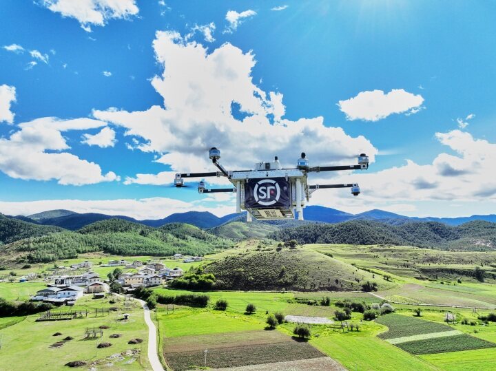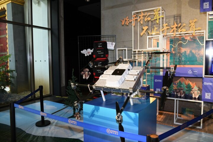 運有松茸的無人機從產區(qū)香格里拉市建塘鎮(zhèn)吉迪村出發(fā),不到20分鐘就被送達位于市區(qū)香格里拉大酒店的“始于松茸、不止于松茸”第二屆香格里拉松茸論壇暨順豐寄遞解決方案發(fā)布會現場,這是順豐公司給出的2023年松茸寄遞解決方案之一。