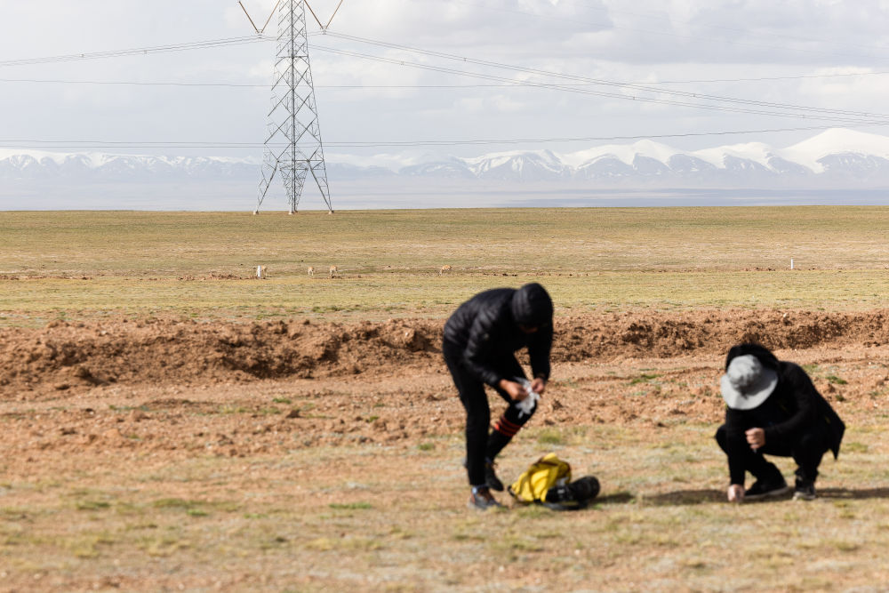 這里是世界自然遺產(chǎn)地可可西里,兩人是中國科學(xué)院西北高原生物研究所研究員連新明和他的學(xué)生王東。