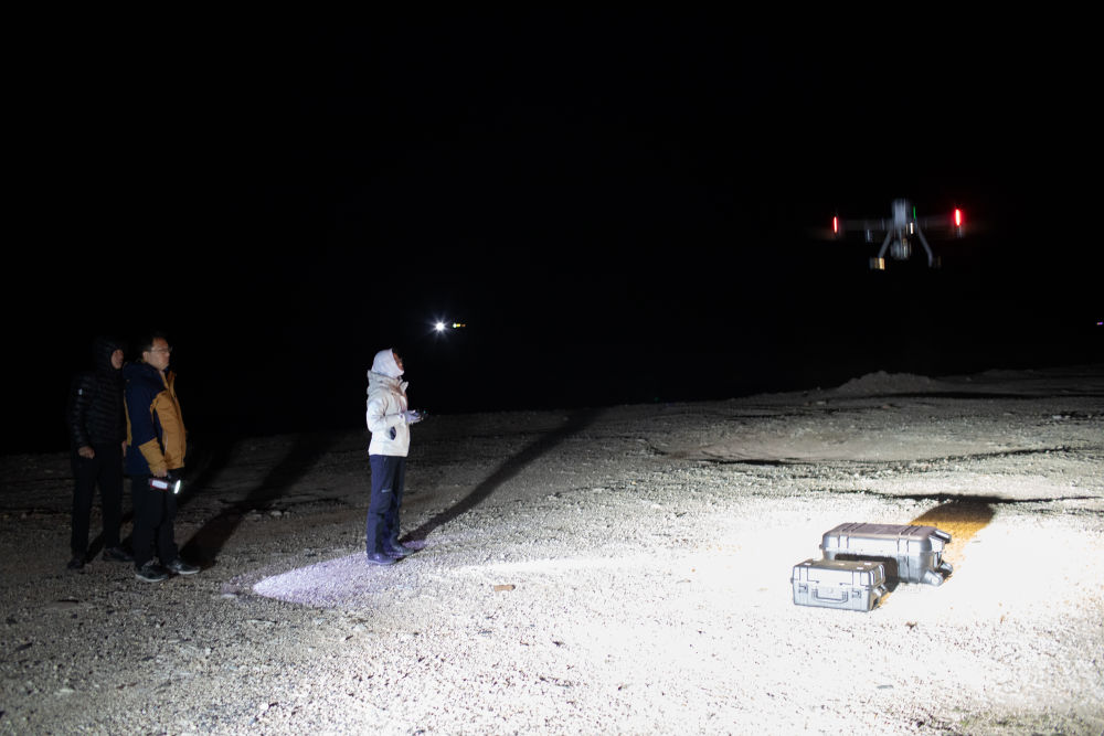 6月16日凌晨,連新明團(tuán)隊(duì)使用無人機(jī)監(jiān)測藏羚羊遷徙途中的夜宿地。