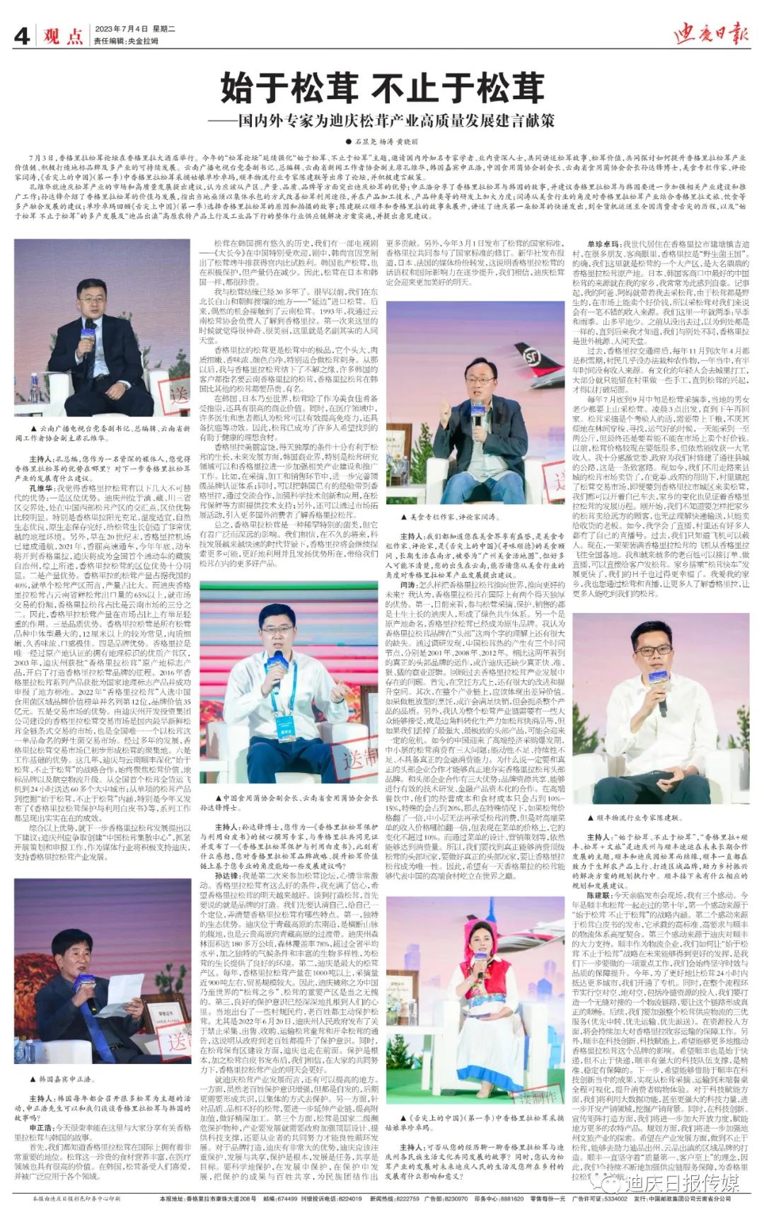 【關(guān)注】明日出版的《迪慶日?qǐng)?bào)》第四版將整版刊登國(guó)內(nèi)外專家對(duì)迪慶松茸產(chǎn)業(yè)高質(zhì)量發(fā)展給出的建議