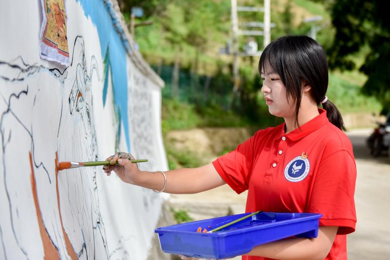 環(huán)境提升美人心。學院建筑與工藝技術系及院團委師生共20人到定點幫扶點拉日村阿尺瑪?shù)走M行鄉(xiāng)村風貌美化工作,開展以黨建、推廣普通話及傈僳族文化為主題的墻面繪畫,累計完成400平米的墻繪,推動農村人居環(huán)境提升,讓鄉(xiāng)村面貌煥然一新。
