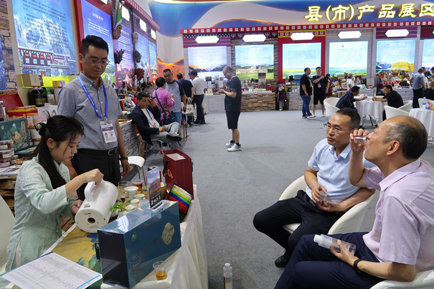 當(dāng)天,這樣的場景在甘孜展館各縣(市)展區(qū)前比比皆是。