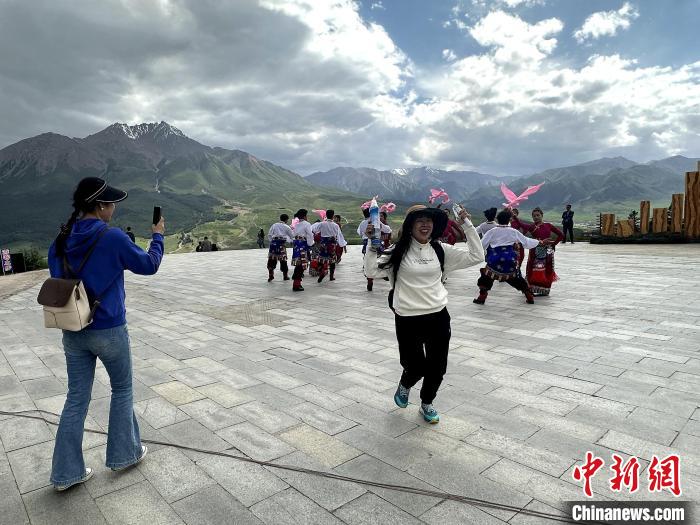 圖為游客與祁連民眾一起跳舞。李雋 攝