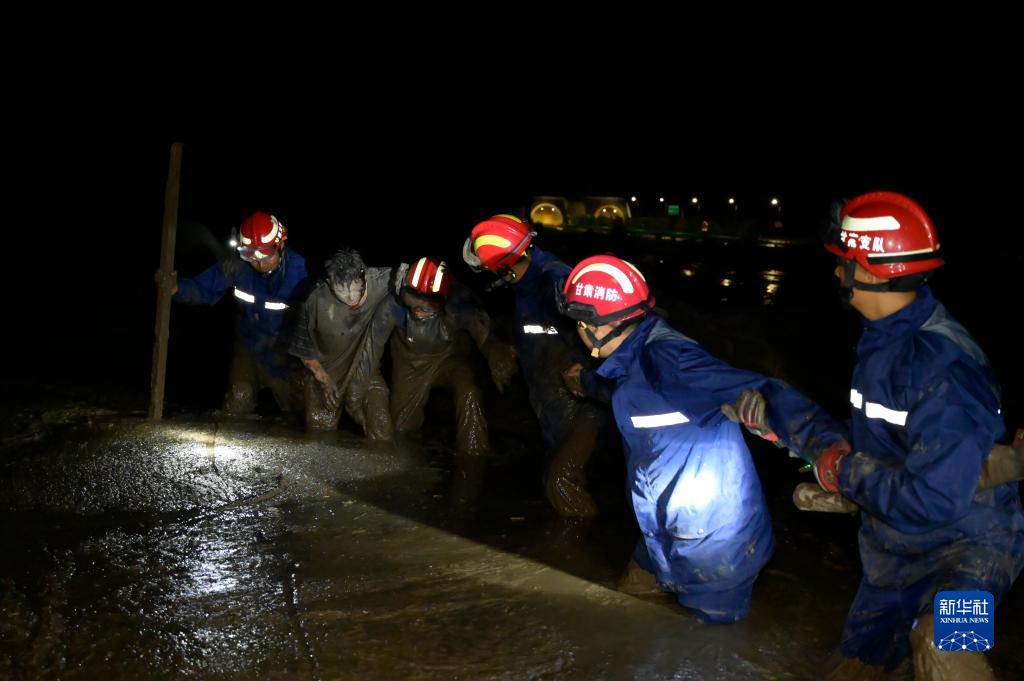 7月11日凌晨,當地救援力量在開展人員搜救工作。新華社發(fā)(夏河縣消防救援大隊供圖)