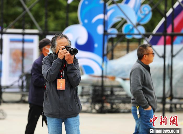 圖為攝影師徐晉燕在玉樹市拍攝。薛蒂 攝