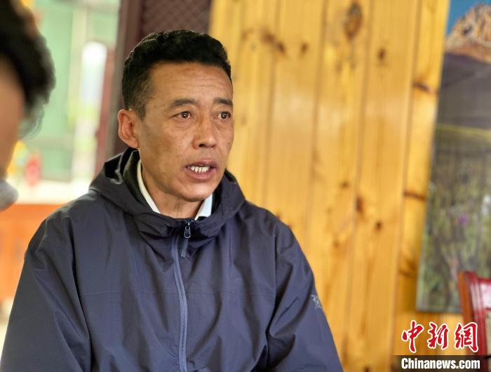 圖為三江源國(guó)家公園長(zhǎng)江源園區(qū)曲麻萊管理處生態(tài)環(huán)境和自然資源管理局局長(zhǎng)尕塔正在向記者介紹拉覺悟生態(tài)教育站建設(shè)情況。劉洋 攝