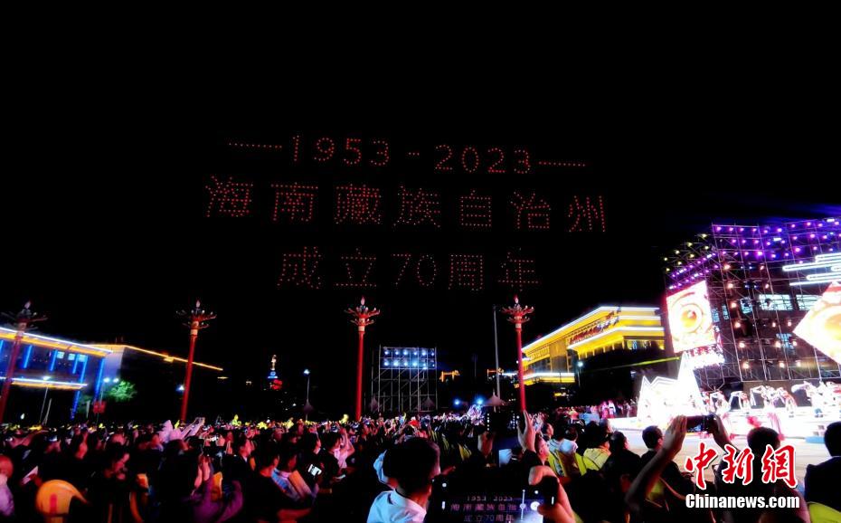 7月31日晚,青海省海南藏族自治州,800余架無人機騰空而起,以夜空為畫布,以燈光為畫筆,組成“光伏羊”“揚帆起航”“防沙治沙”“扎西德勒”等字樣,慶祝青海省海南藏族自治州成立70周年。[詳細]