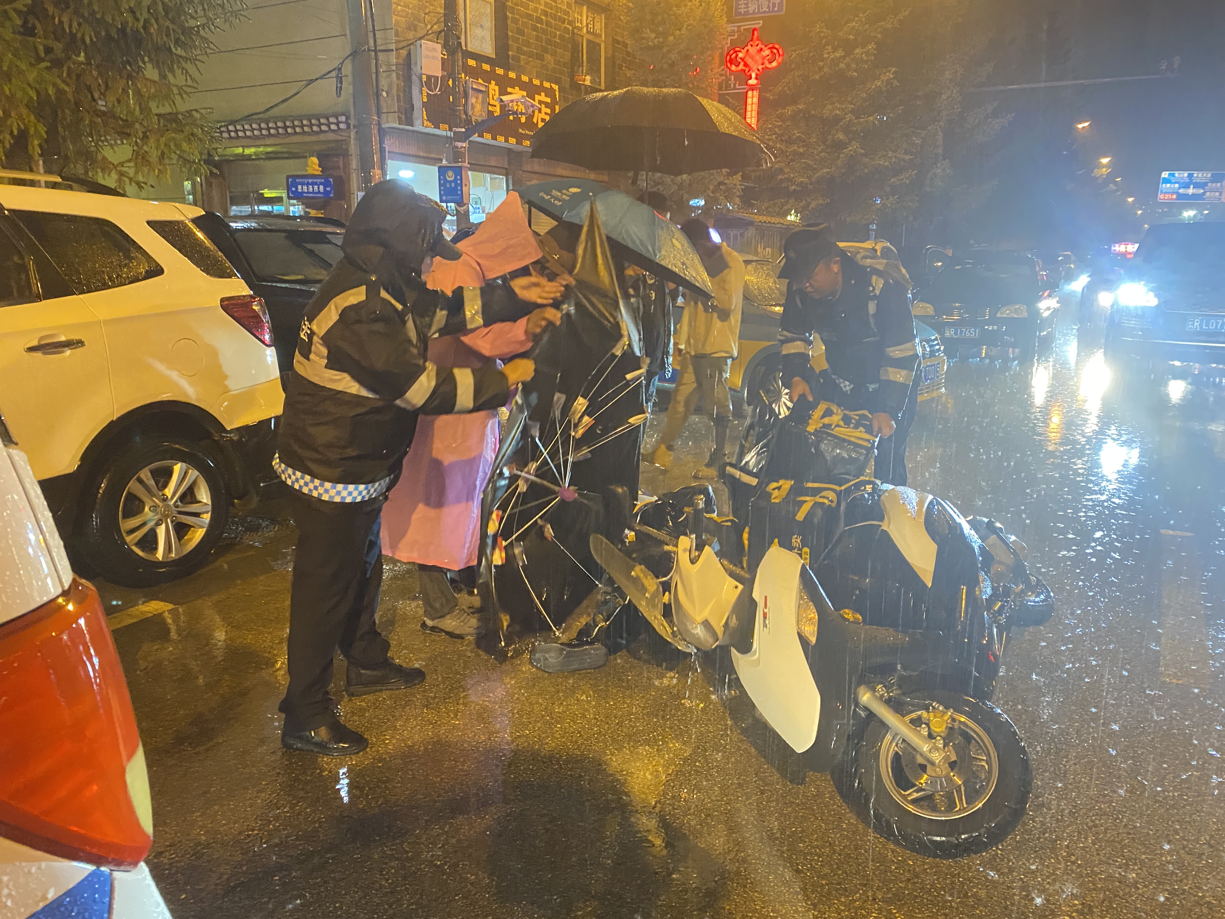 綜合行政執(zhí)法人員冒雨救助受傷者