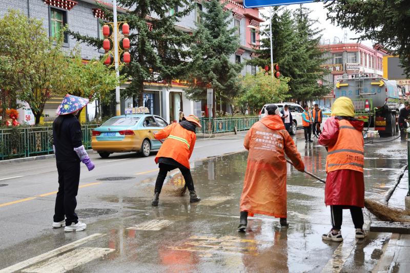為盡快恢復城區(qū)潔凈容貌,香格里拉市和祥環(huán)??萍加邢挢熑喂玖⒓唇M織環(huán)衛(wèi)工人30名,抽調高壓水車2輛、掃地車4輛,積極開展道路清淤工作,同時對下水道水口周邊的樹枝、雜物等進行清理清運。經(jīng)過近五小時的連續(xù)作業(yè),成功恢復道路暢通整潔。