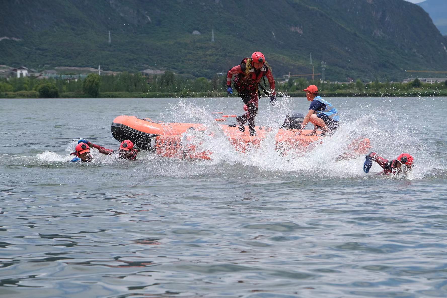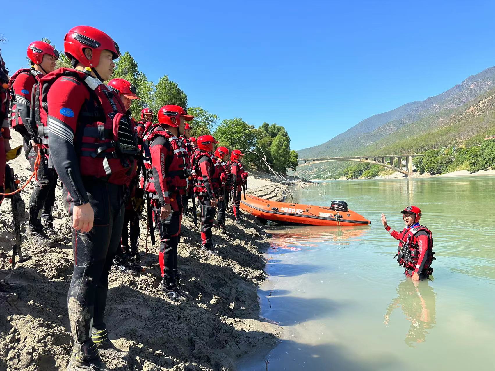 此次演練模擬我州多地因連續(xù)降雨,導(dǎo)致河水水位上漲,洪水沖毀道路,造成附近居民出行困難,距水庫較近房屋被洪水淹沒形成被水圍困的孤島,情況緊急。