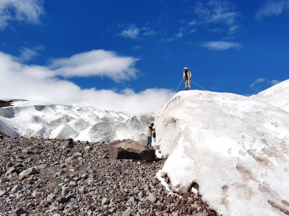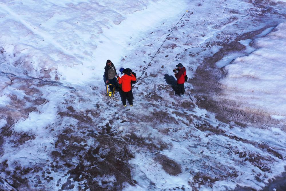 “這是我們第二次登上格拉丹東雪山主峰冰川,在去年測量的區(qū)域開展了4條測量線的雷達探測?!倍跨f,去年測量區(qū)域冰川平均厚度約12米,此次探測結(jié)果可用來比較冰川的厚薄變化,為計算冰儲量積累數(shù)據(jù)。