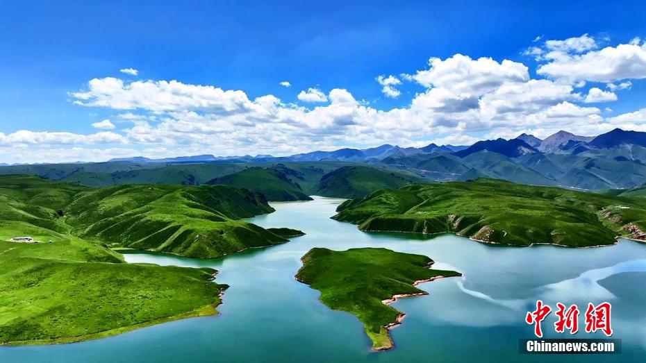 祁連山草原湖泊形成的美景。