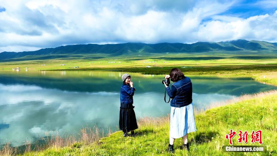圖為游客在祁連山美景留影。