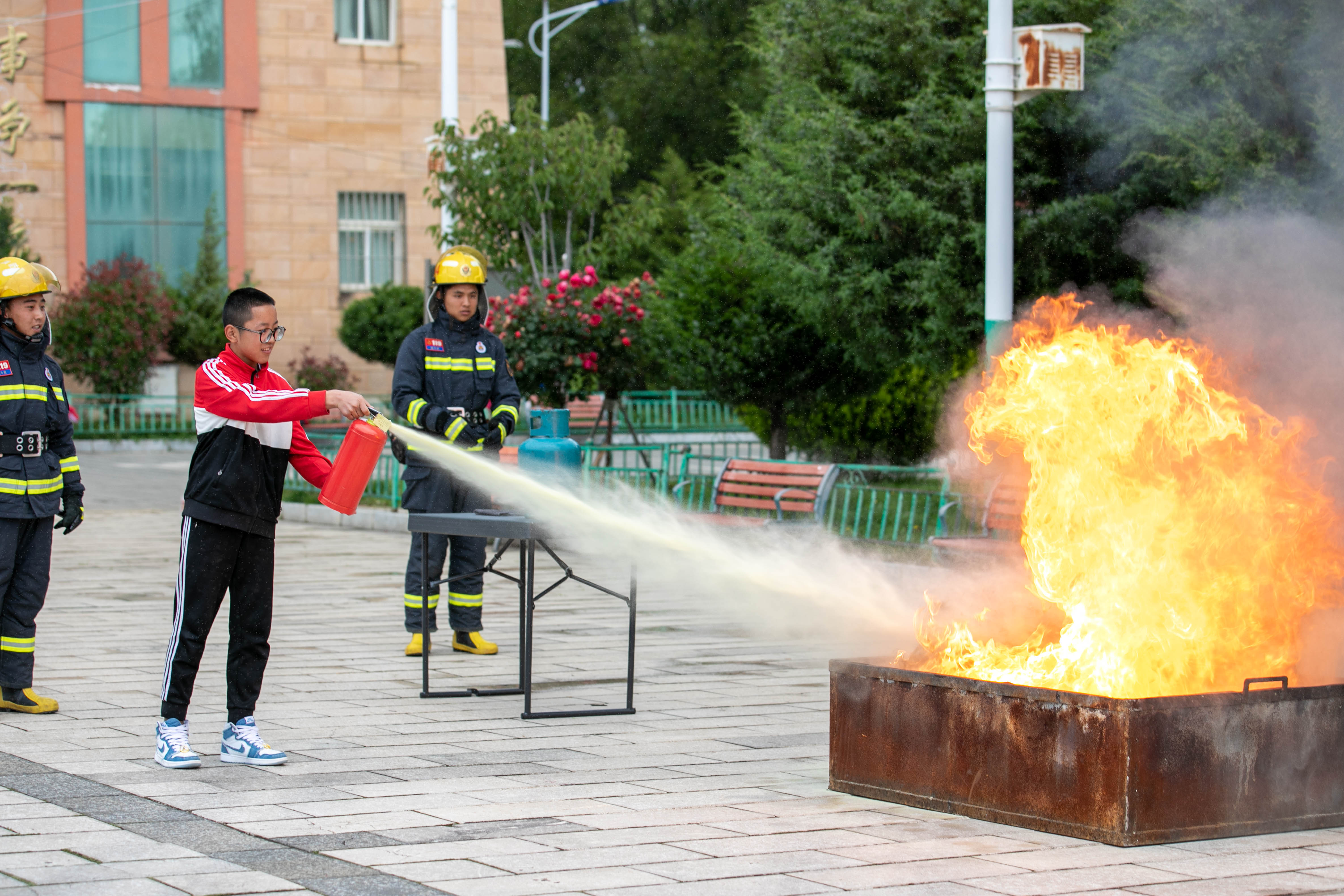 其間,支隊宣傳員還帶領學生們 “零距離”參觀體驗消防車輛和器材裝備,對搶險救援車、液壓破拆系統(tǒng)、手抬機動泵等消防器材裝備進行現(xiàn)場講解,讓師生了解器材裝備的用途和使用方法?;顒又羞€開展了真火撲救實操演練及應急疏散逃生實戰(zhàn)演練。