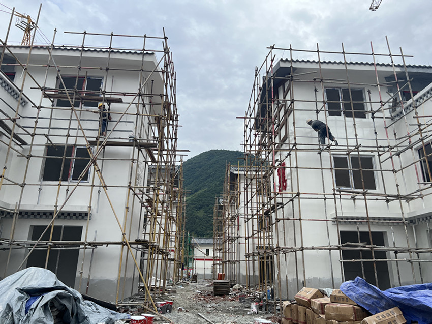 在德威鎮(zhèn)奎武村安置點(diǎn),機(jī)器轟鳴、熱火朝天,工人們有的在噴外墻漆,有的在鋪設(shè)廣場地磚,大家各自忙著手中的活,齊心協(xié)力按下災(zāi)后重建的“加速鍵”,共繪美好家園“新畫卷”。